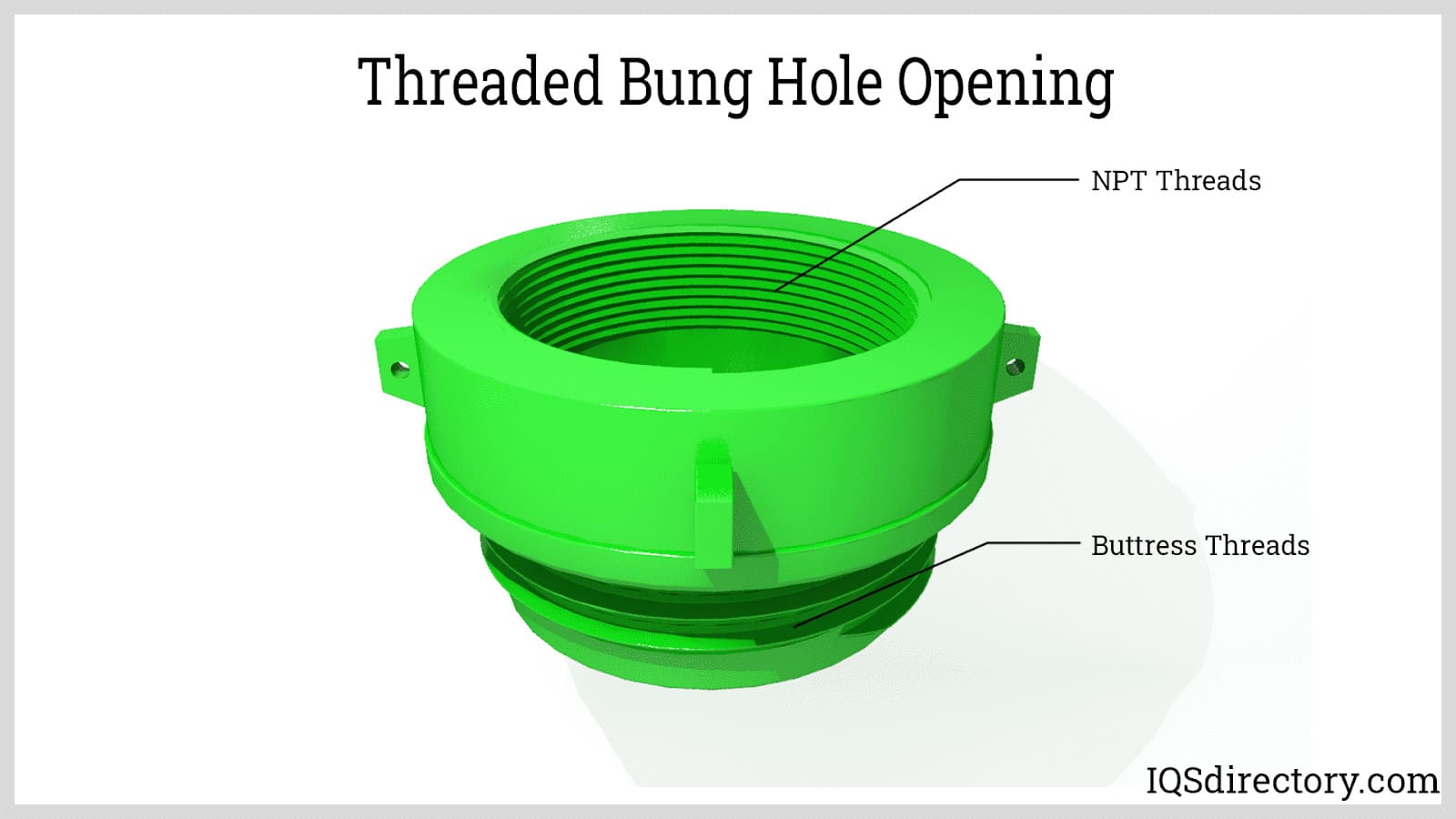 Closed head drums feature two threaded openings on the top: one for ventilation and the other for content access. The material of these bung holes, either plastic or metal, is selected based on the type of material contained in the drum.