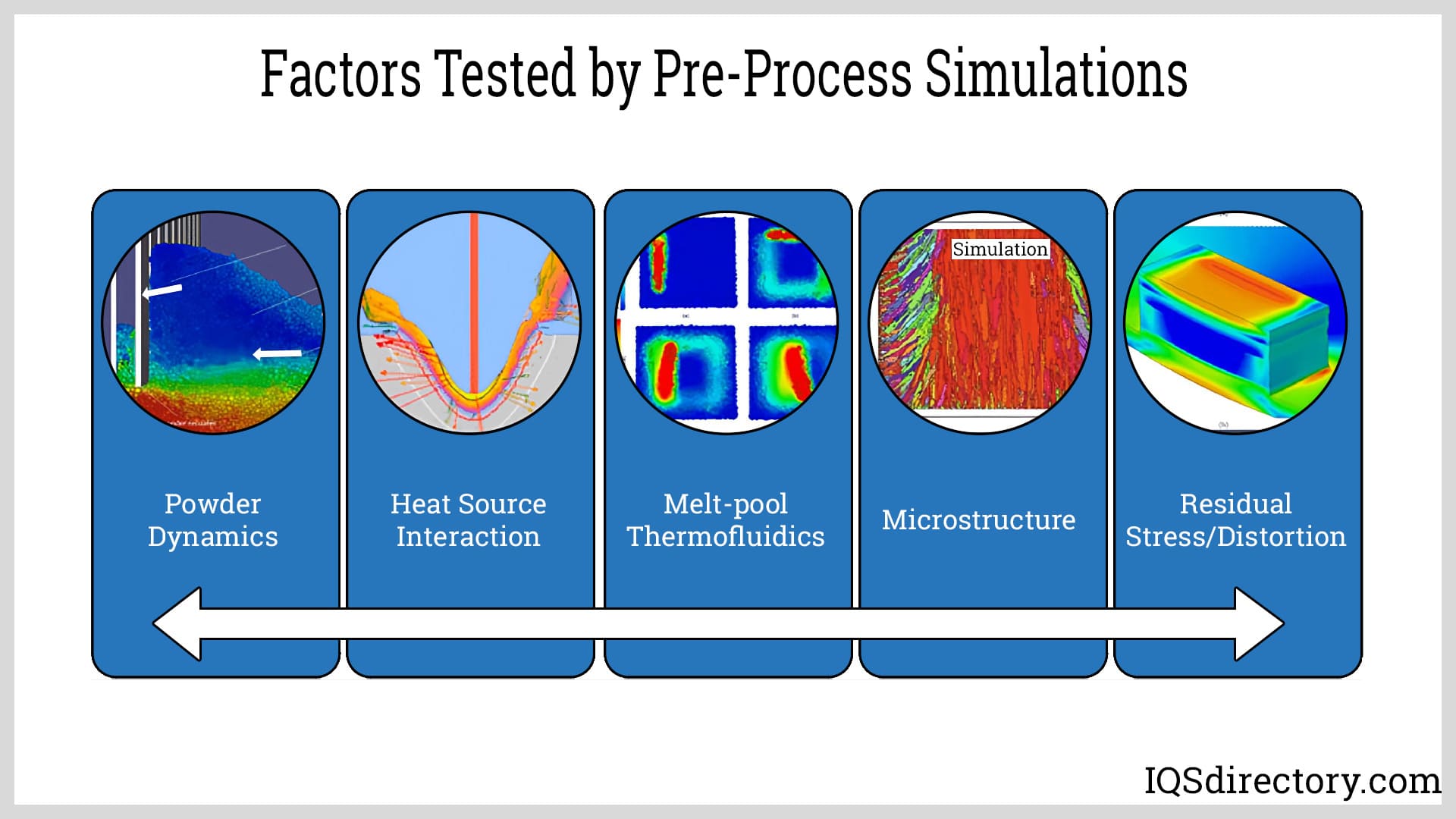 The choice of simulation modeling for pre-processing is based on economics since prototyping can be too costly for testing certain parts. In addition, it enables engineers to test concepts and troubleshoot issues before ideas become critical or dangerous. Some of the factors that are caught by simulations are material warping and bonding issues. Additive manufacturers are able to address risks of production to reduce failures using the data collected from simulation modeling.