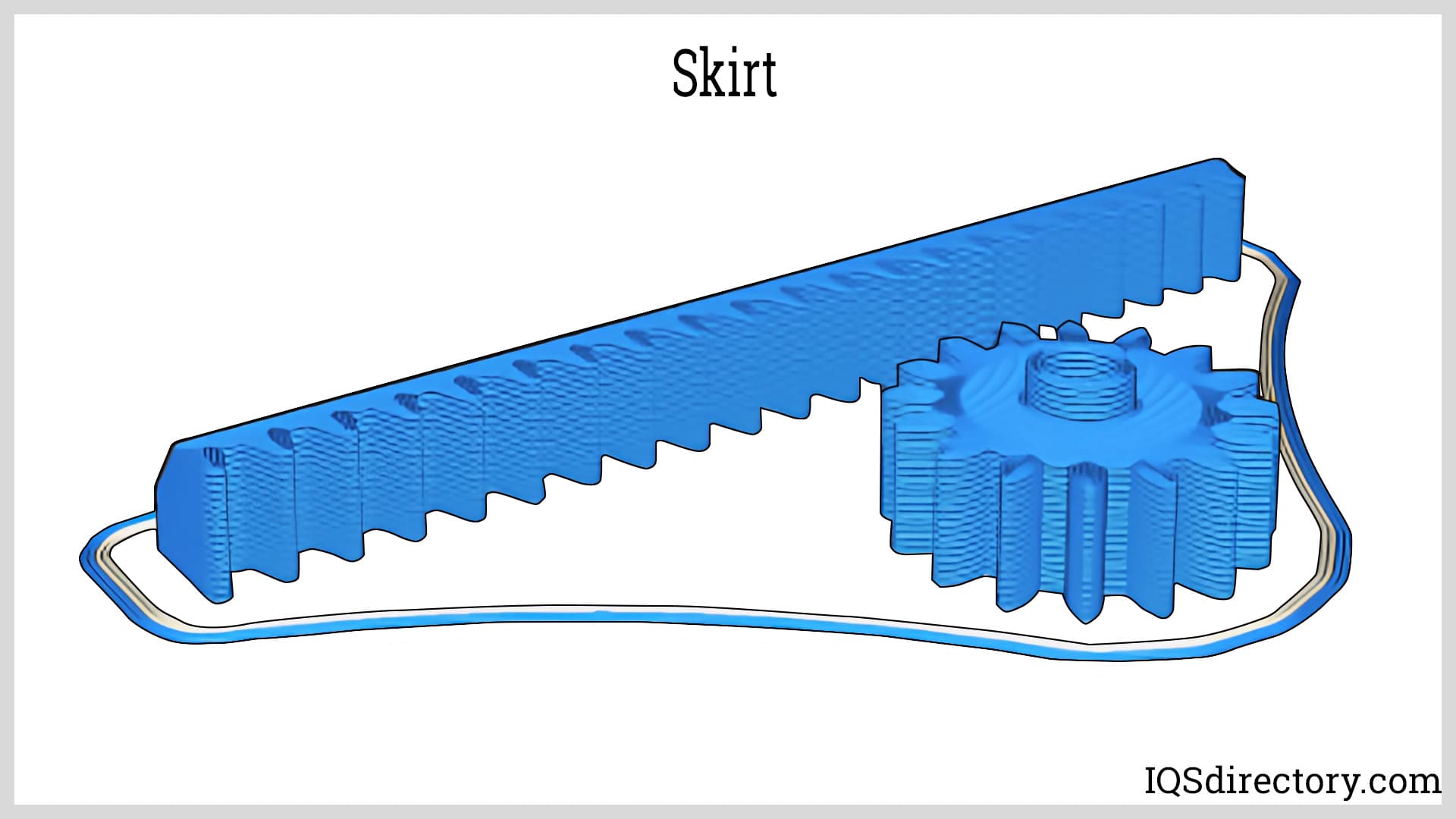 Skirt – The skirt is extruded on the bed before the printing process begins. It primes the extruder and establishes a smooth flow of filament. Monitoring the skirt helps in detecting issues with leveling and adhesion before the modeling process begins. Skirts can be adjusted in the settings tab in relation to its position, amount of plastic being primed, and even the extruder.
