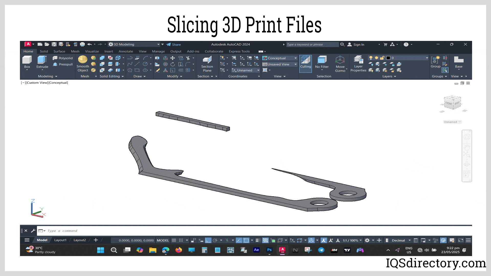 The different types of 3D slicer software that convert CAD models to .STL, .3DF, or .Obj includes a variety of software packages that are capable of converting 3D designs into 2D layers. As with CNC machines, tool paths or G-codes are used to direct the additive manufacturing process.