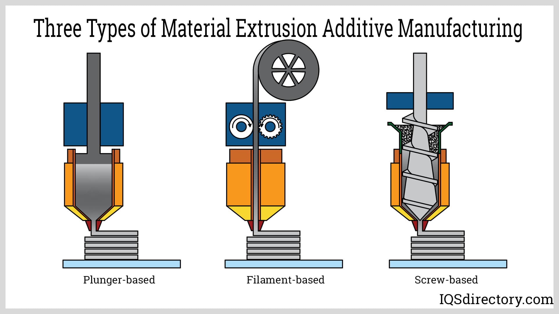Material extrusion deposits a filament of composite or thermoplastic material in layers to form a 3D part. The filament comes from a heated extruding nozzle mounted on a movable arm. As material passes through the nozzle, it is heated before being deposited. Material extrusion is a slow process that is less accurate than other forms of additive manufacturing. The nature of material extrusion makes it applicable for rapid prototyping.