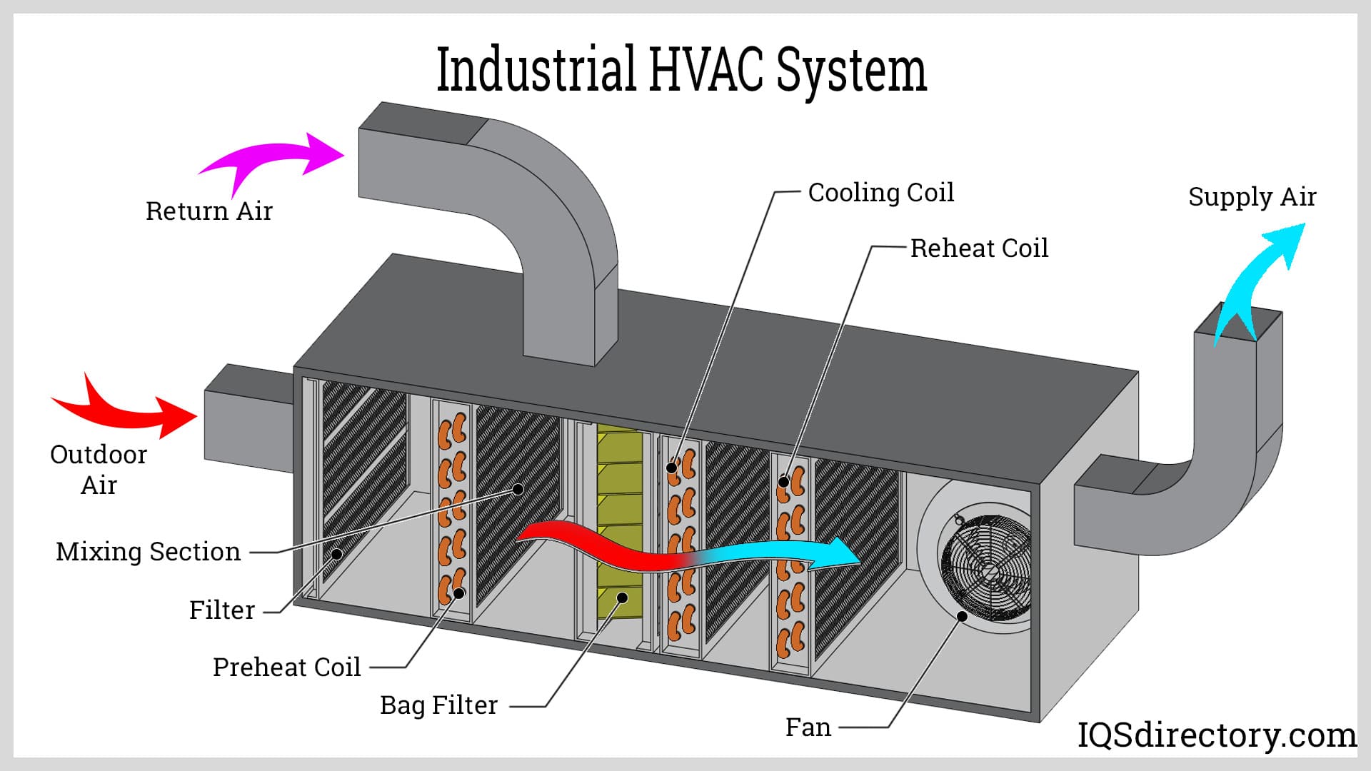 The above description is the basics of an air conditioning system. Other features may be added for extracting heat or cooling the refrigerant. An industrial air conditioner may be part of an interconnected system that involves a furnace, heater, and air handler. As with all aspects of industrial air conditioners, the addition of components depends on the system's design.