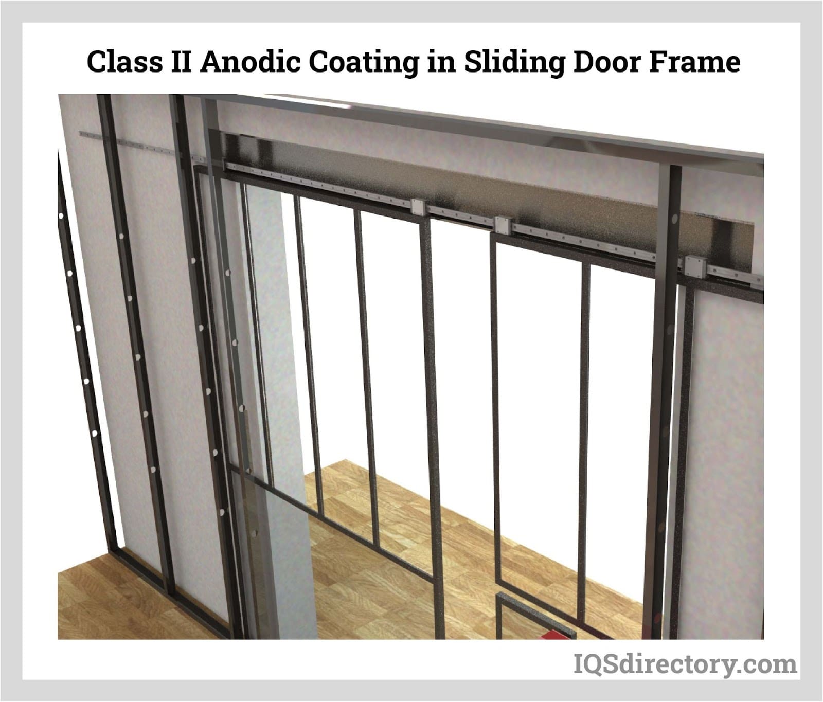 A Class II anodic coating has a minimum thickness of 0.4 mils (10 microns). Parts with Class II coating are typically used in interior applications or light-exterior environments where high wear and fatigue are not expected. Common uses include radiators, wall fins, column covers, trim pieces, and storefronts.