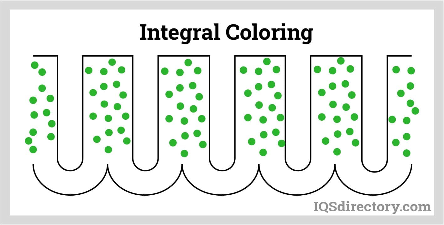 Integral coloring combines the anodizing and coloring processes into a single step, where the oxide film is dyed during anodization. This process uses a bath containing organic and sulfuric acids, resulting in a thicker, more abrasion-resistant coating. However, it is a costly method, and producing colored oxide films can be more challenging. The range of colors achievable is generally limited to shades of pale to dark yellow, bronze, brown, black, and gray.