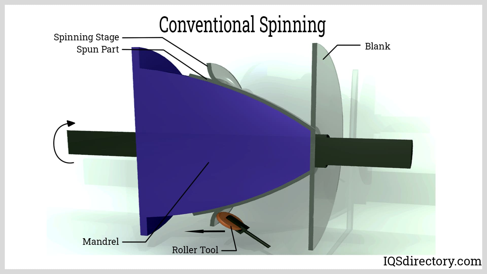 Spinning, or spin forming, is a process where a disc or tube of aluminum is rotated at high speed on a lathe. A form block is positioned on the lathe, and a properly sized disc of aluminum is clamped against this block with a pressure pad. As the aluminum disc and form block spin, force is applied to the workpiece, causing it to conform to the shape of the block. This force can be applied using one or multiple tools to ensure a smooth, wrinkle-free final product.