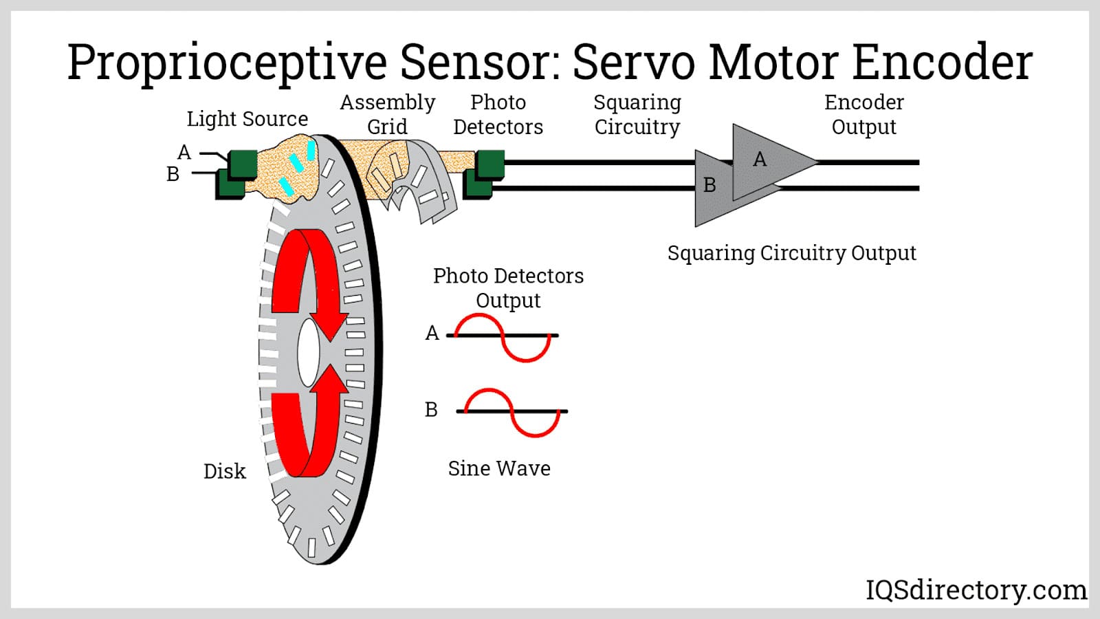 Proprioceptive sensors measure AGV-internal values such as battery levels, wheel position, motor speed, load conditions, temperature, and current. Common types include encoders, potentiometers, gyroscopes, and electronic compasses.