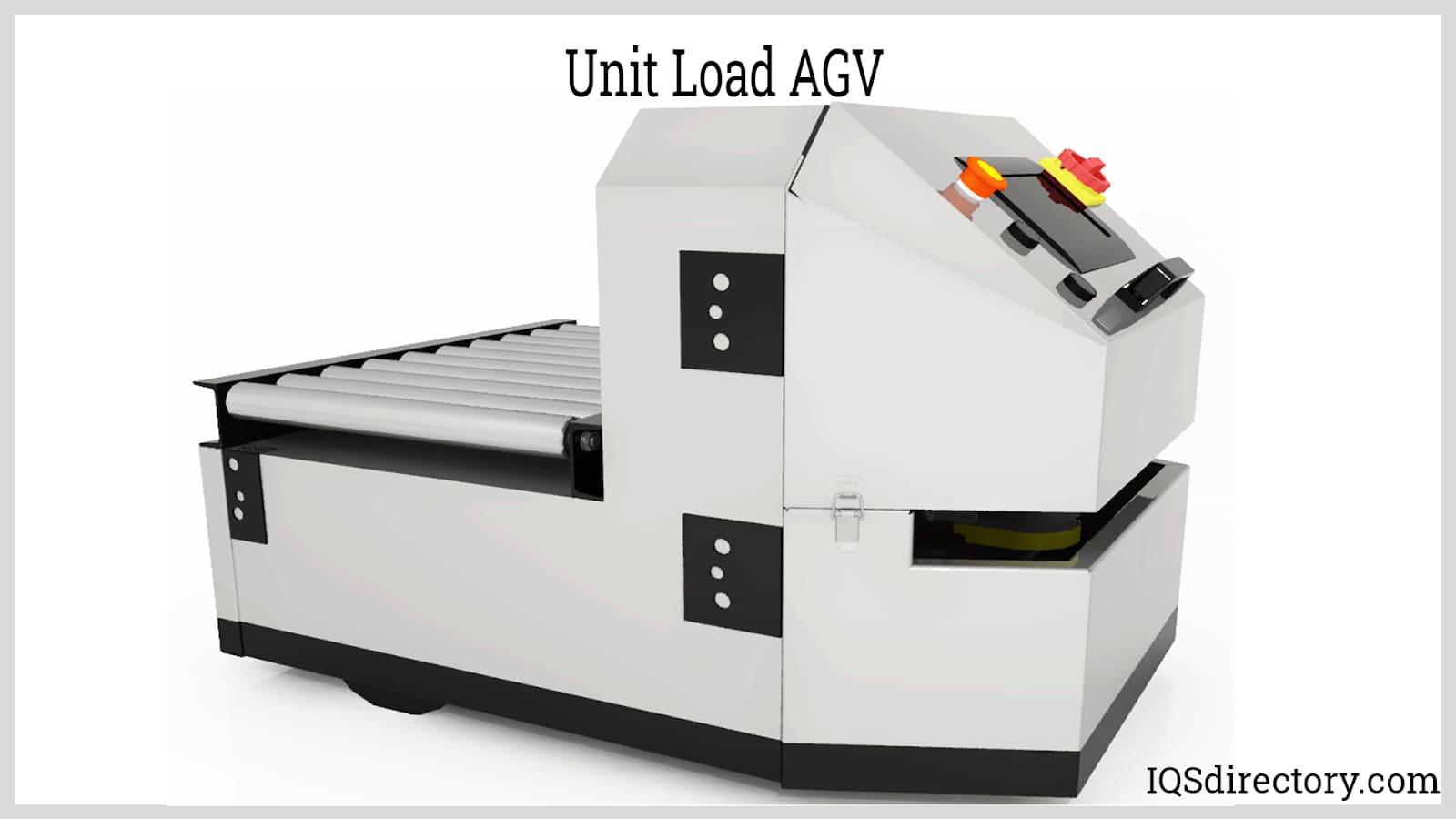 AGV types include forklift AGVs, underride AGVs, towing AGVs, unit load AGVs, assembly AGVs, heavy load AGVs, mini AGVs, AGV scissor lifts, and truck loading AGVs. Each type is optimized for specific material handling, load capacity, or workspace integration tasks.