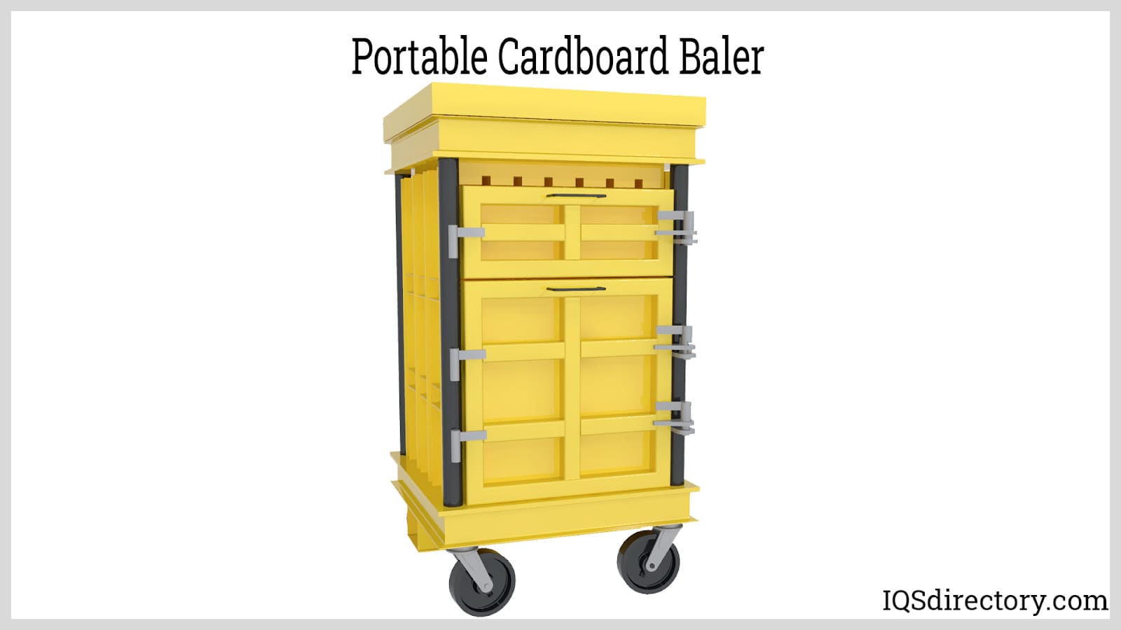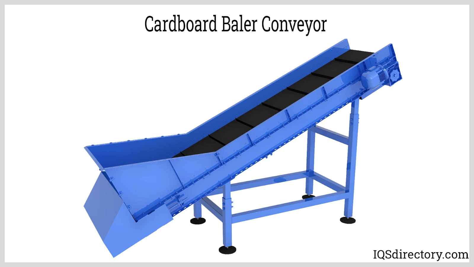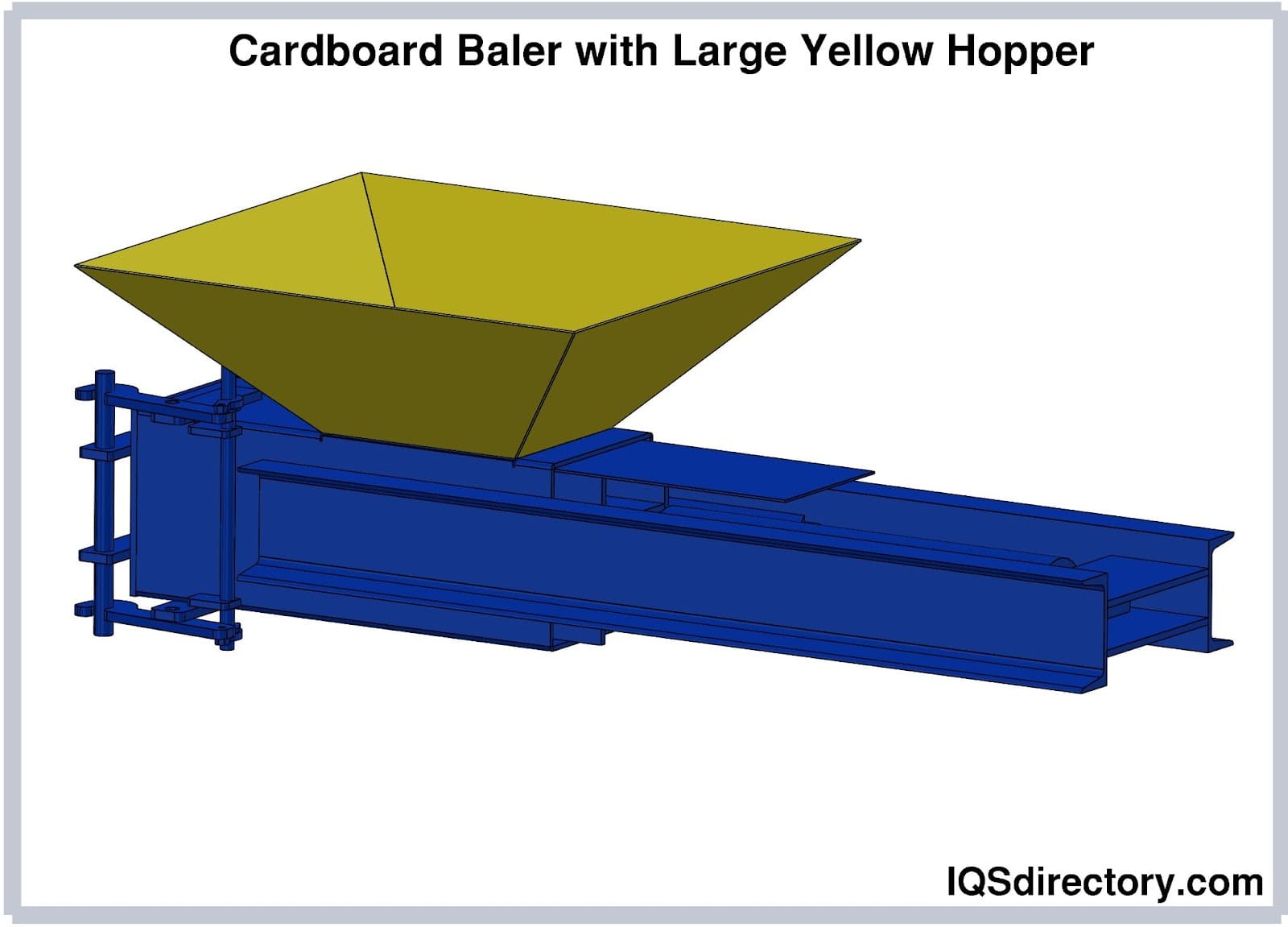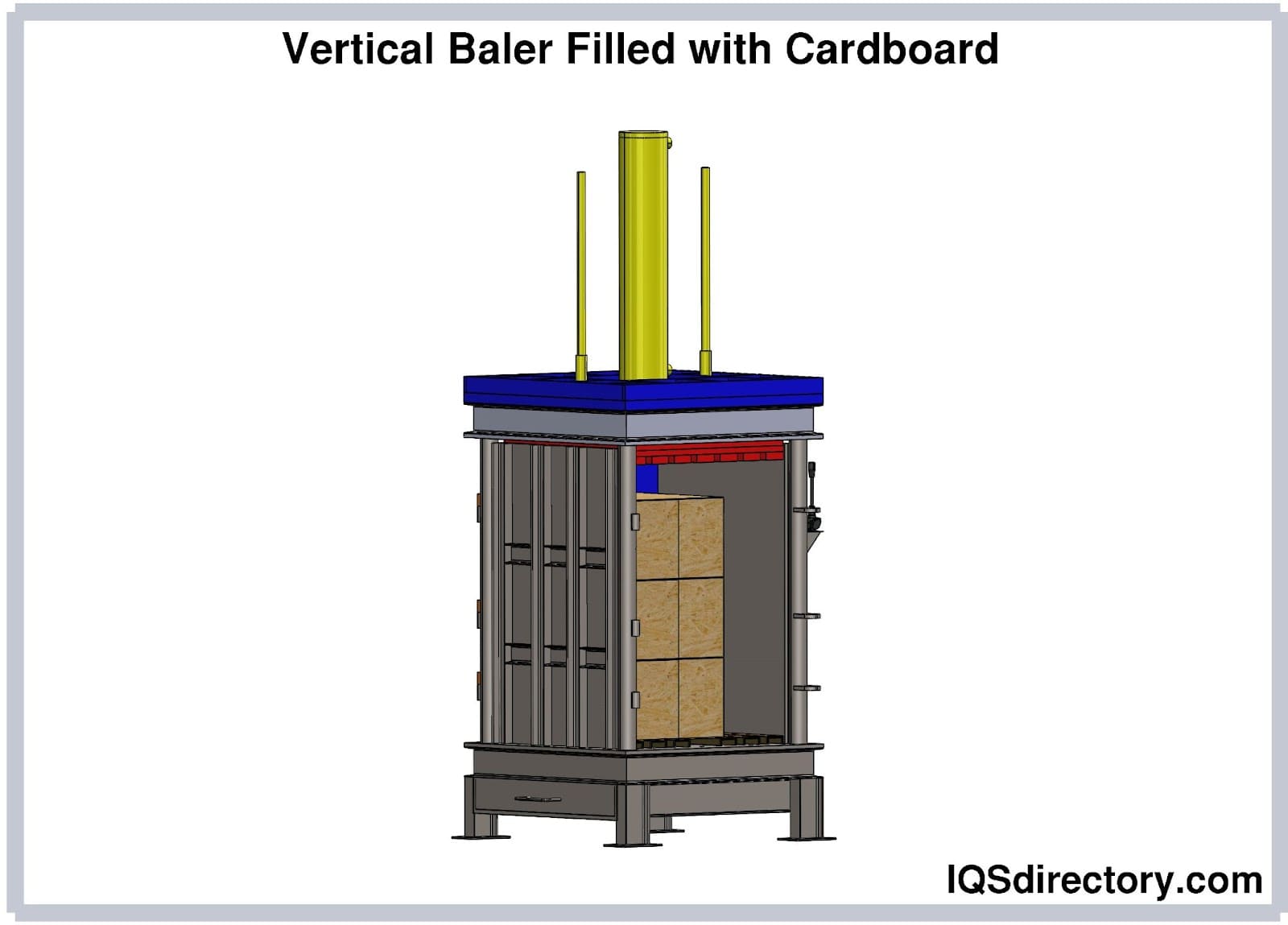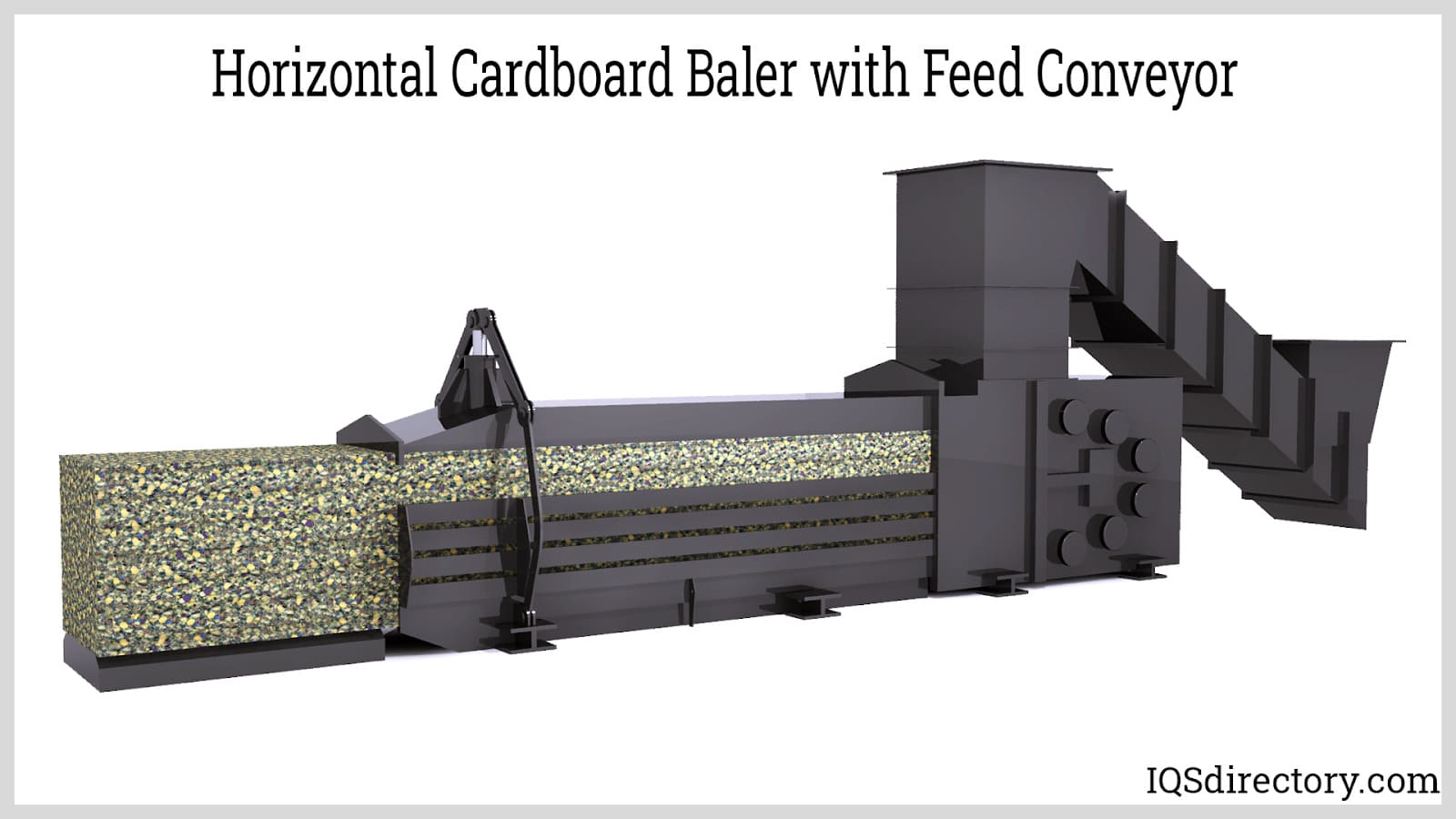 A cardboard baler is a mechanism that uses a metal plate driven by a hydraulic ram to apply tremendous pressure and force to crush, compact, and compress pieces of cardboard into tightly formed and easy-to-transport cubes and rectangular bales.