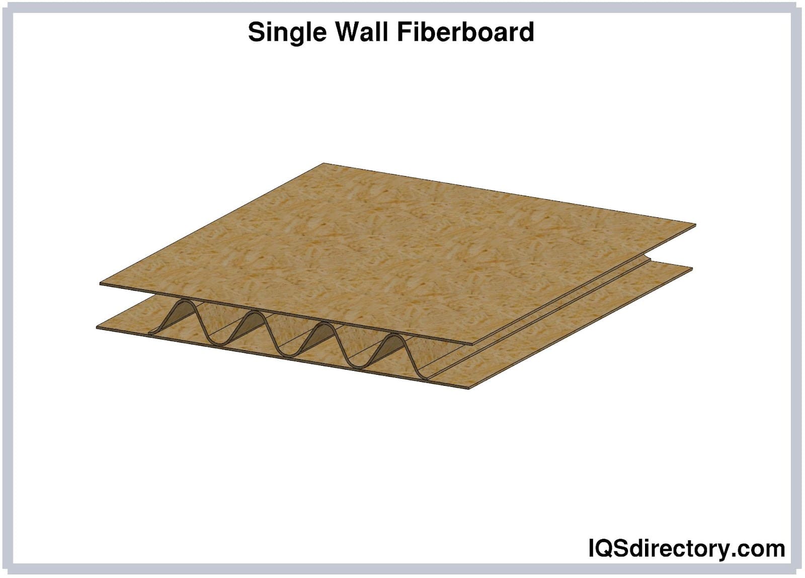 Single wall fiberboard is commonly used for shipping boxes for consumer products. It consists of one layer of flutes, or wavy paper, with paper glued on both sides. The flutes come in various sizes, ranging from size A, which is 3/16 inch, to size F, which is 1/16 inch.