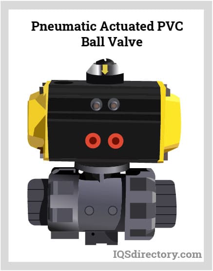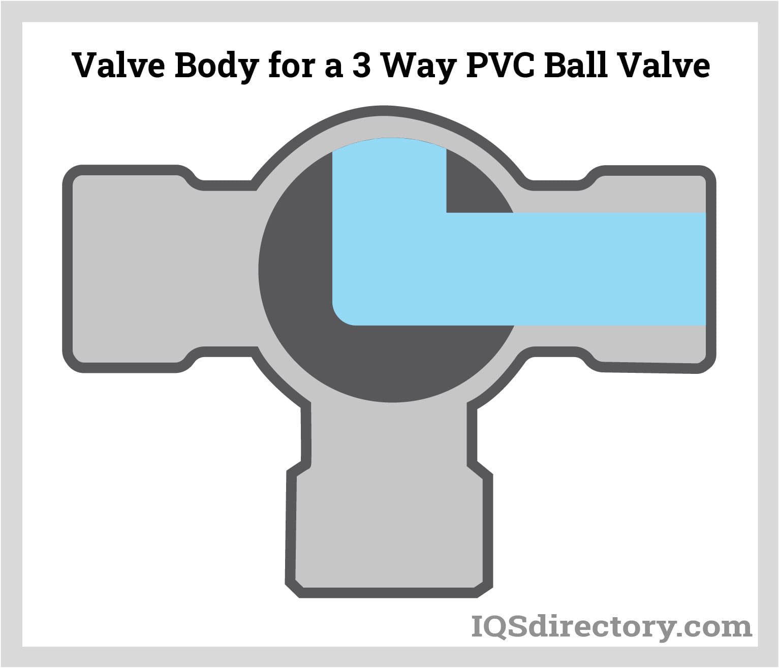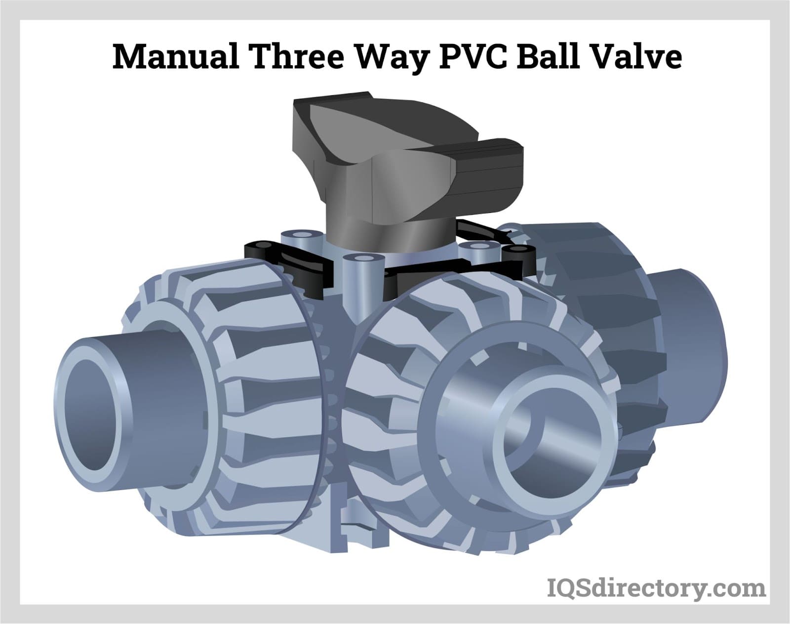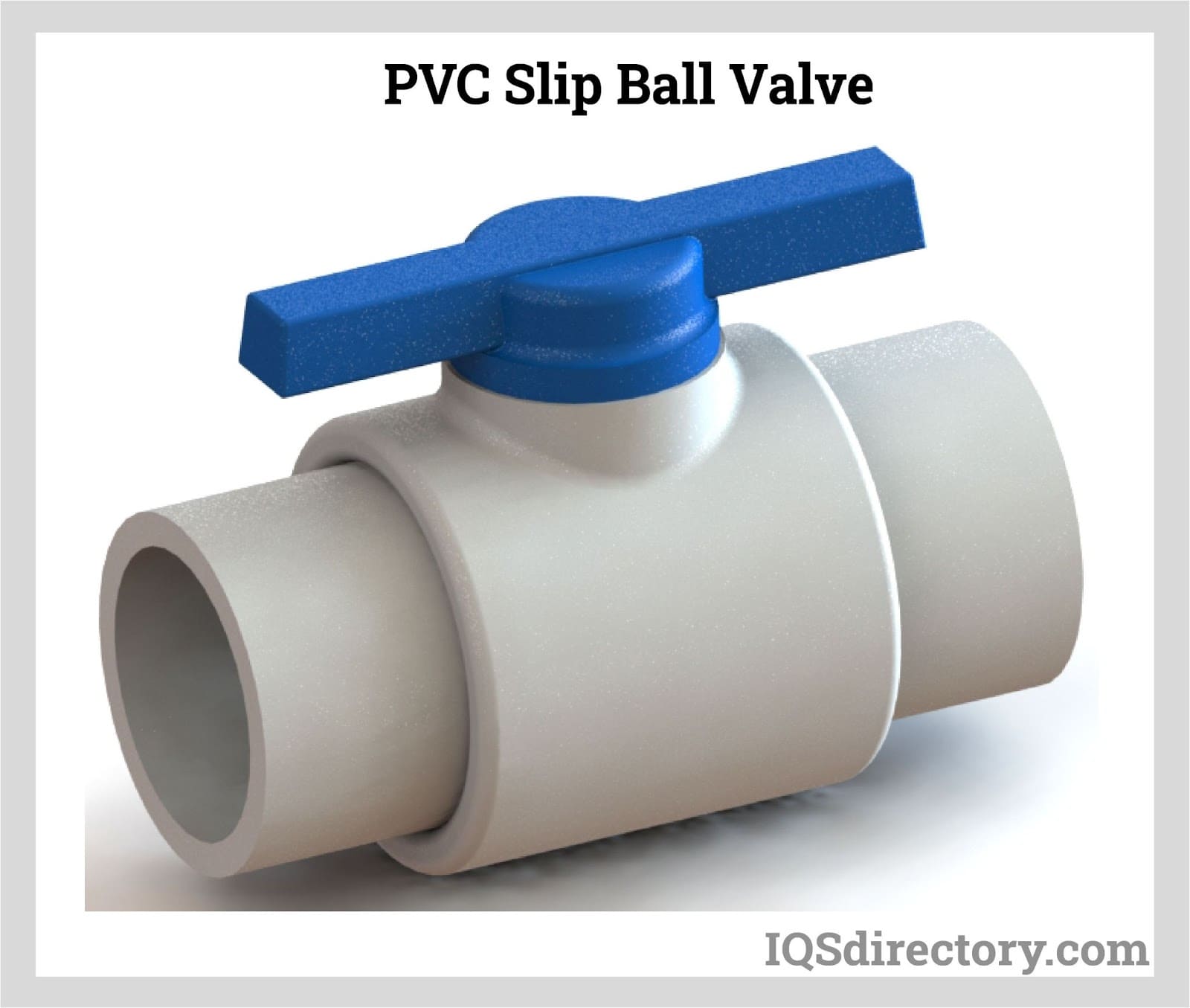 A PVC or polyvinyl chloride ball valve is a plastic on and off valve that has a rotary ball with a bore where turning the ball a quarter turn can stop the flow of a media.