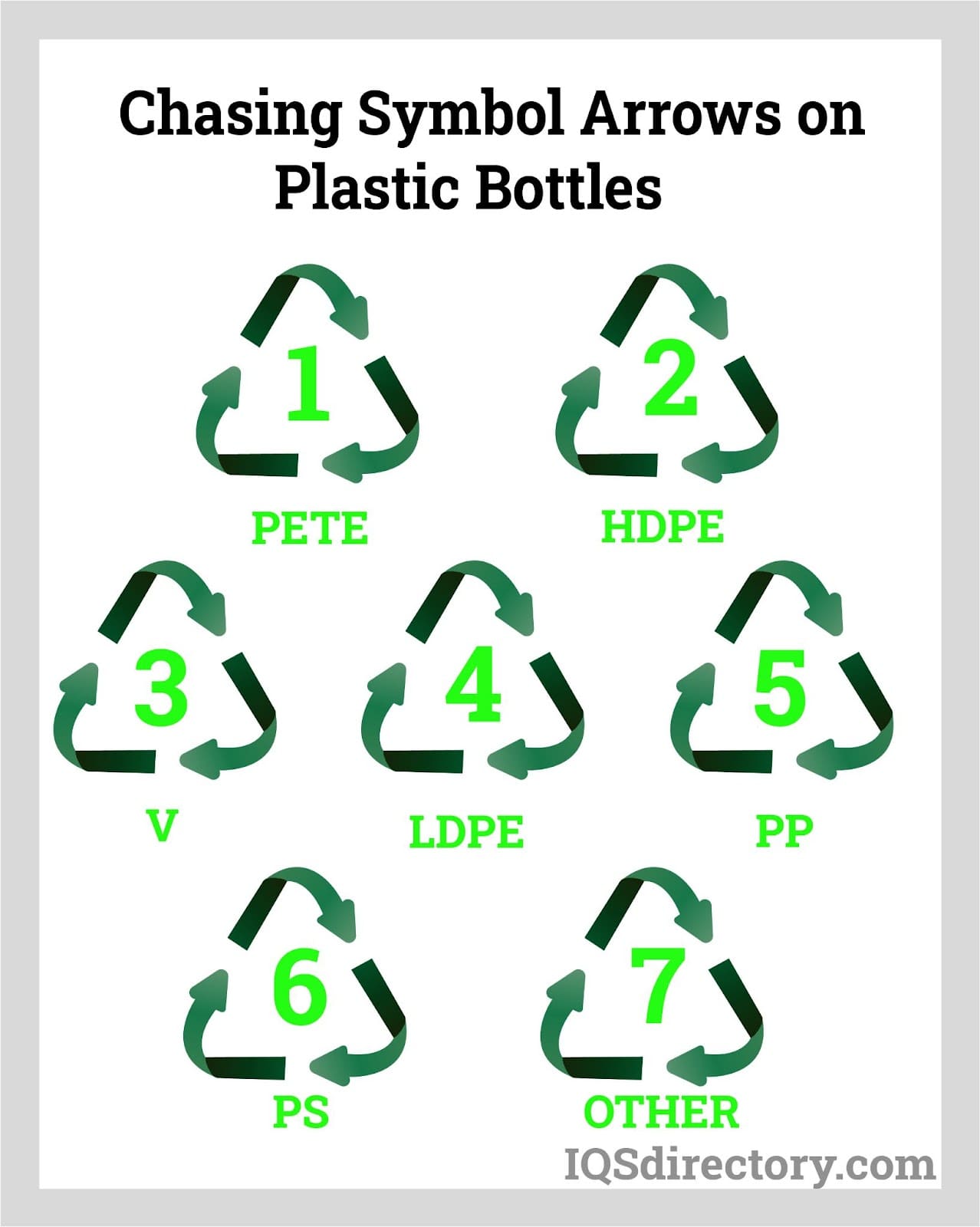 A chasing arrows symbol, or resin code, does not necessarily mean that a plastic container is recyclable. Most plastic containers are marked with the chasing arrows symbol number one through seven in the center.