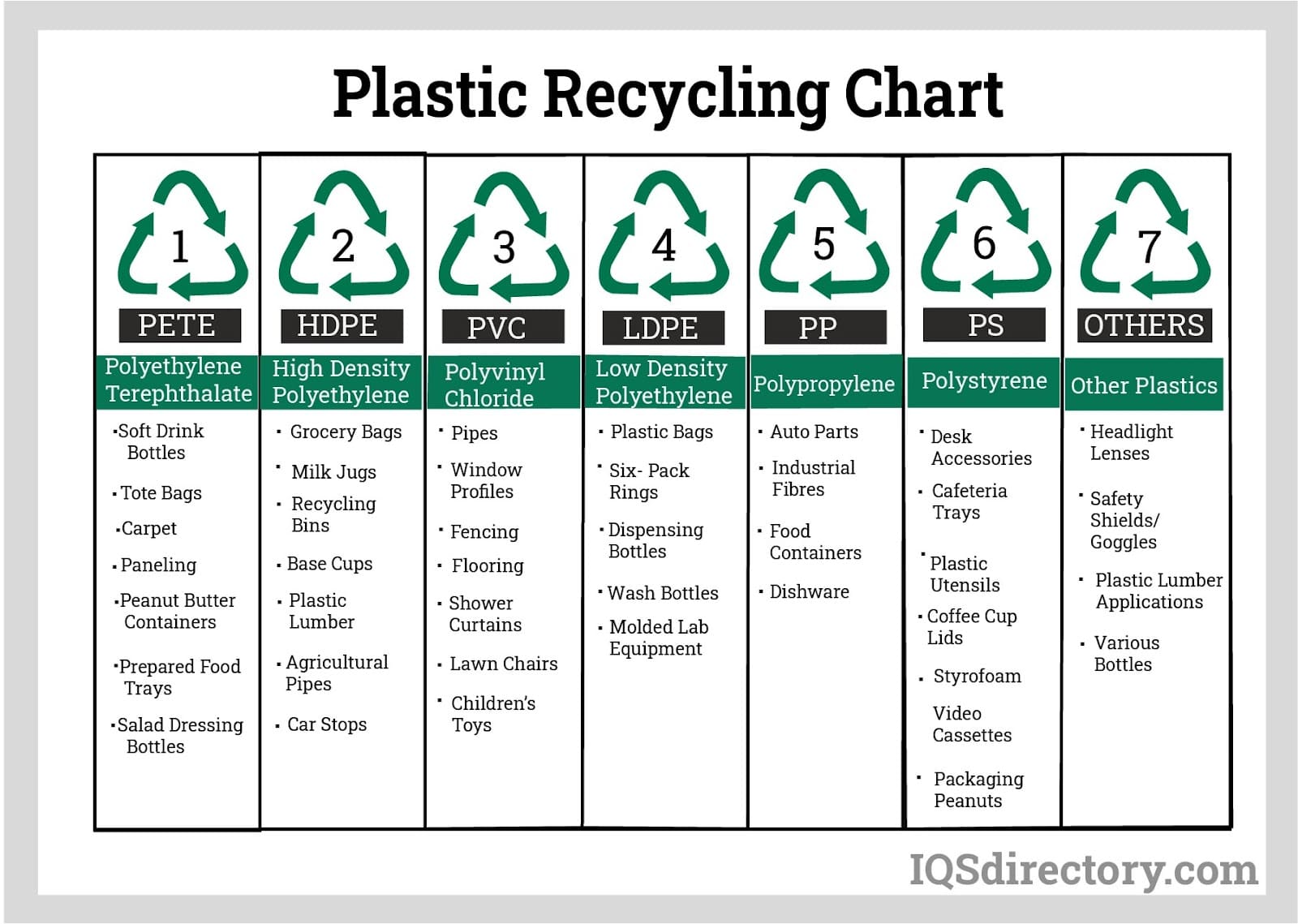 Most cities collect type 1 and 2 plastics, as well as PET and HDPE resin bottles. These are created using a blow-molding procedure. The remaining plastics numbered 3 through 7, which are made using injection molding or stamp molding techniques, contain additives. These plastics require distinct recycling procedures and have a different end market, so they are not commonly collected.