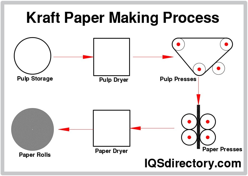 Kraft paper is produced by chemically pulping wood chips, removing lignin for strength. The pulp undergoes pressing, drying, and sometimes bleaching. Additives can enhance tensile strength, water resistance, and surface durability for packaging use.