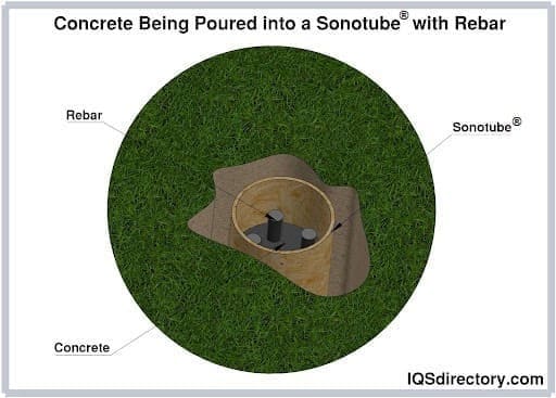 A Sonotube® is a cardboard concrete forming tube made of waxed paper or lamination that is wound into a tube into which concrete is poured to create supports, columns, and supports for posts. Sonotube® is a registered trademark owned by SPC RESOURCES, INC...