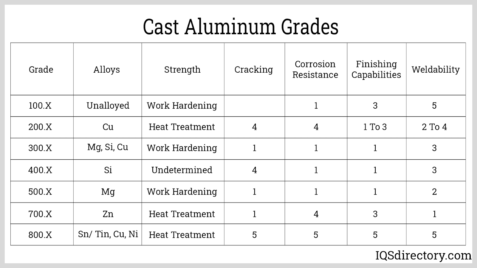 | Cast Aluminum Grades | ||||||