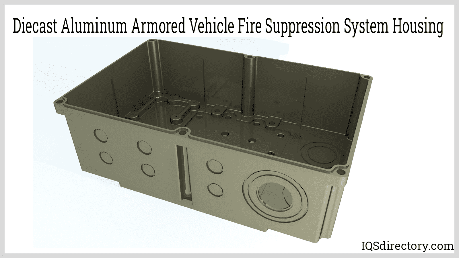 A fire suppression housing is designed to extinguish fires in armored vehicles, ensuring that the vehicle can withstand direct hits without compromising the safety of its occupants.