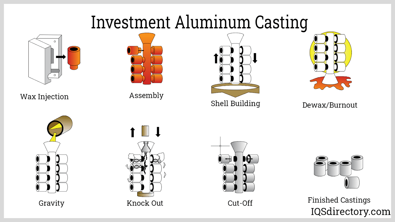Investment casting is a metal working process that uses a ceramic shell built over a wax pattern to produce parts with extraordinarily uniform and smooth surfaces. The wax pattern is produced from an aluminum die.The final products of investment casting are without parting lines, mold half marks, or other deformities...