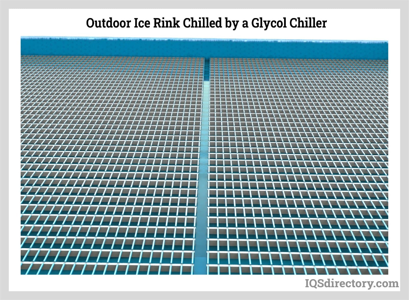 Engineering an outdoor ice rink in a warm climate presents unique challenges. However, glycol chillers, which can cool below the freezing point of water, make it feasible. In such installations, glycol is pumped through mats placed beneath the ice rink surface. Water sprayed over these mats then freezes upon contact, allowing the rink to maintain ice even in warmer temperatures.