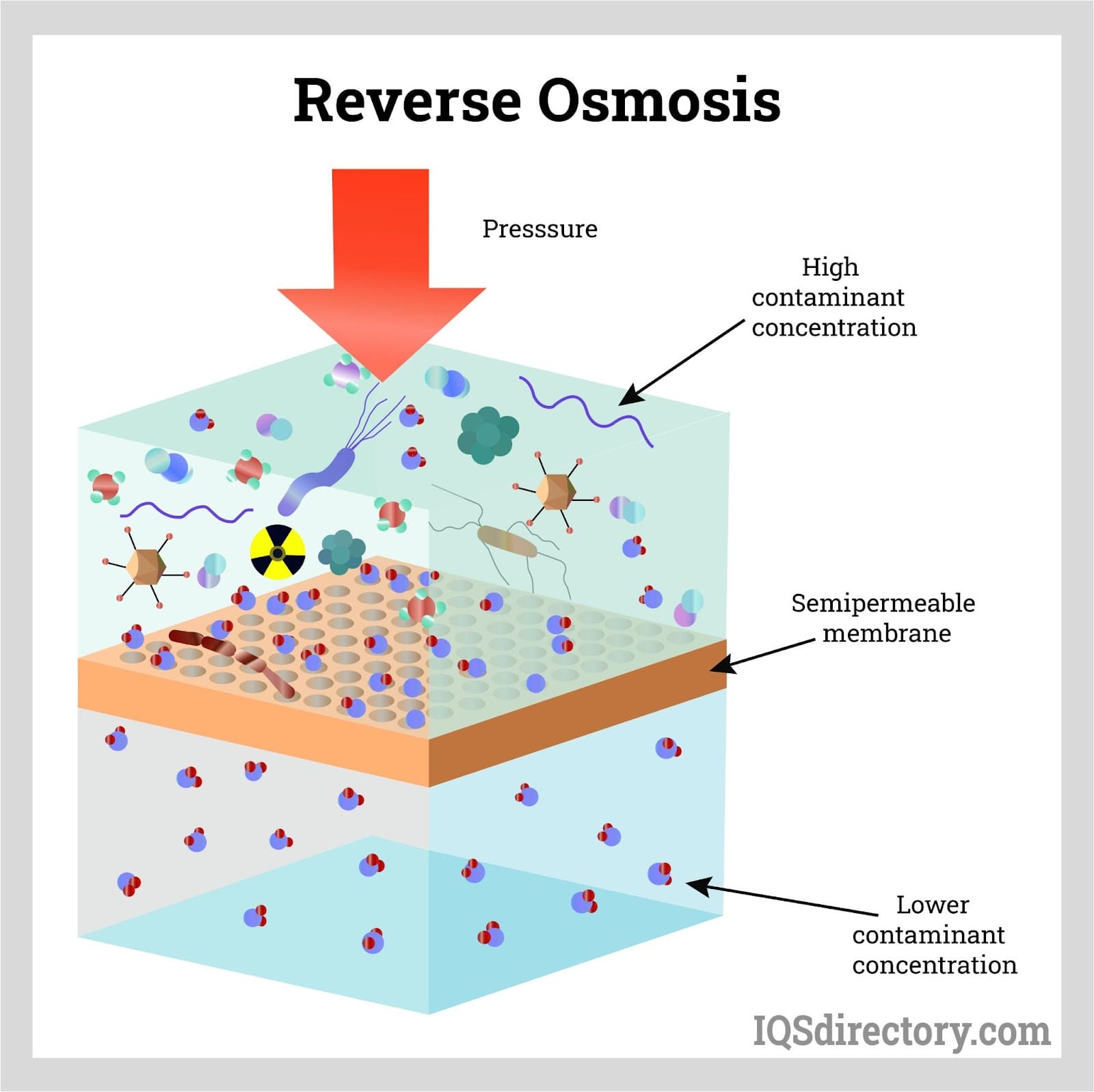 Deionized water, although initially effective for starting up a chiller process, should be replaced periodically, since prolonged use can cause aggressive leaching of metals and deterioration of system components. Reverse osmosis and hyperfiltration technology remove dissolved solids, chlorides, and impurities, ensuring long-term chiller reliability and reduced service needs. This is especially relevant for high-purity environments such as pharmaceutical manufacturing, data centers, or specialty chemical plants. The process can be seen below.