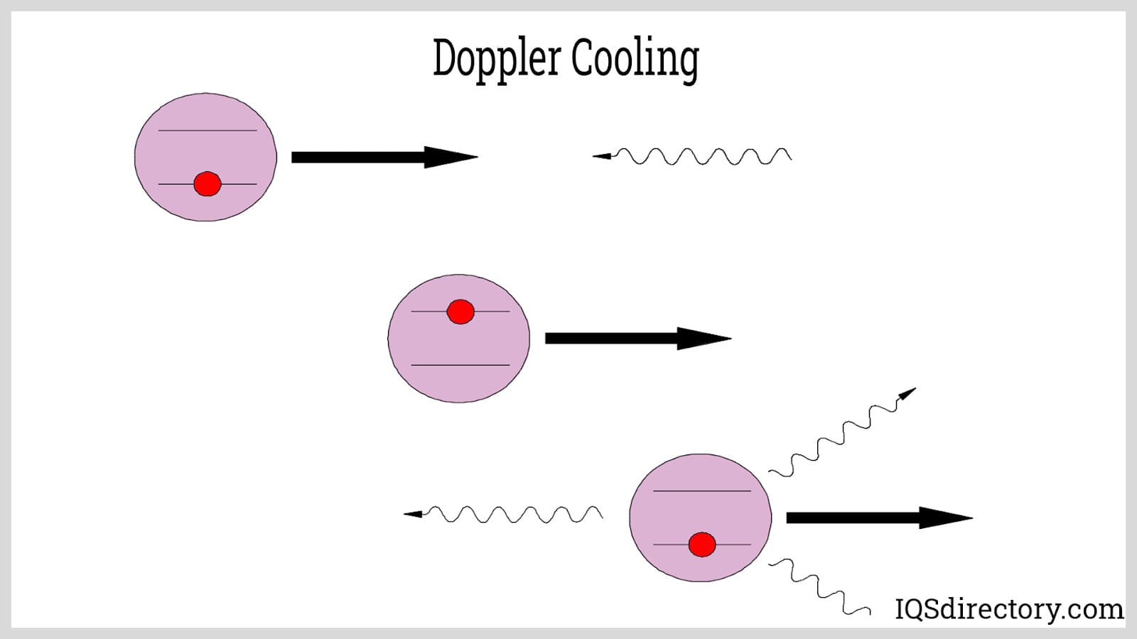 Doppler cooling is used to trap and reduce atom motion, effectively cooling substances. A stationary atom does not experience a shift in laser light and therefore does not absorb the photon.