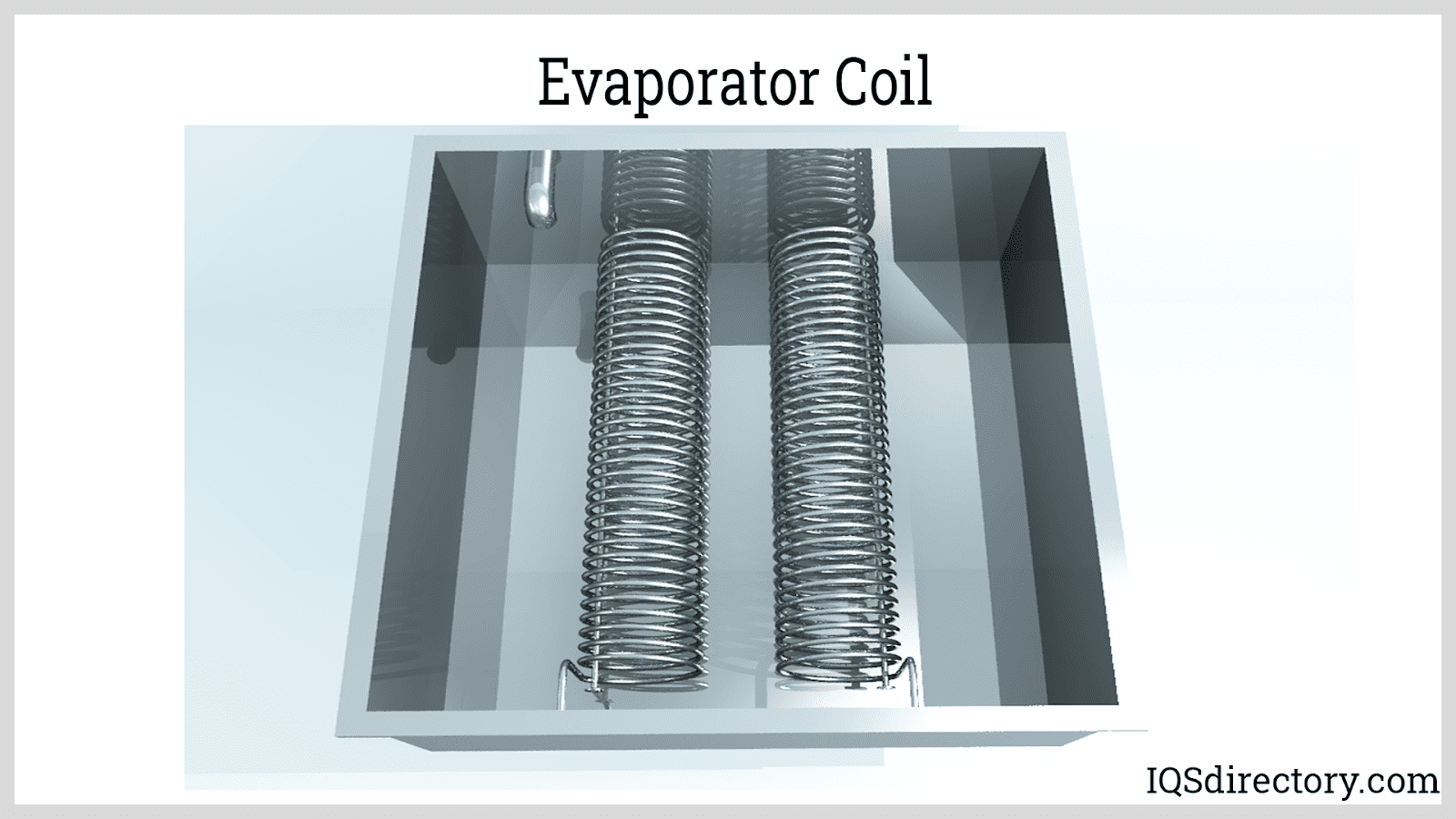 Evaporator - In the evaporator of an industrial water chiller, heat boils the refrigerant and changes it from a liquid to a gas to be sent on to the compressor. The key to the process is the pressure under which the vapor leaves the evaporator.