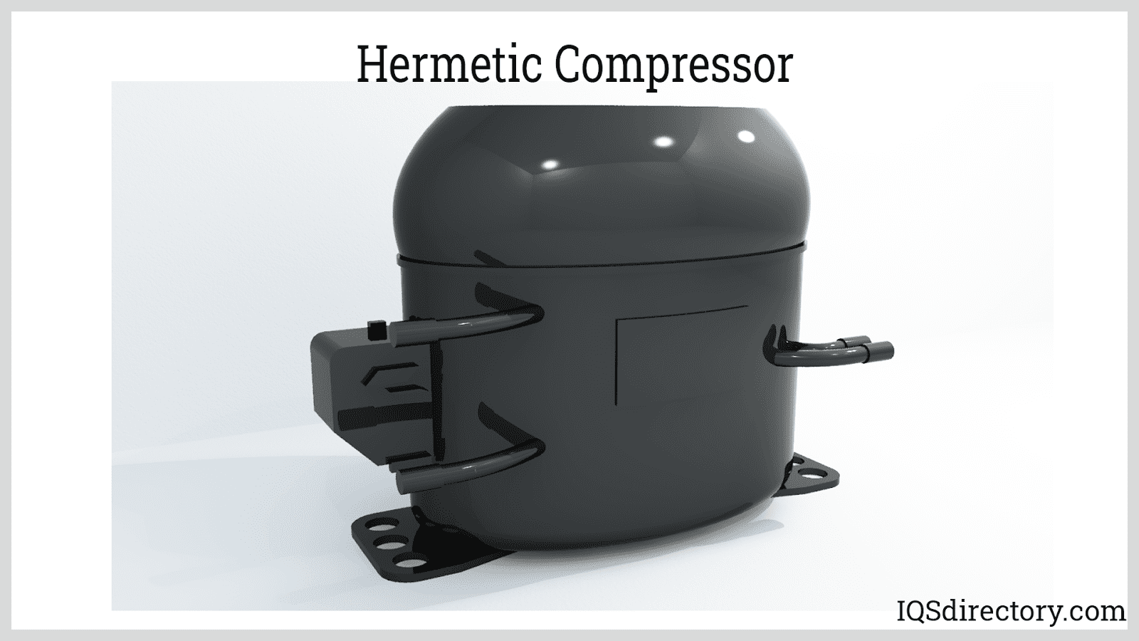In this type, the motor and compressor are housed together in a sealed, welded shell. The refrigerant flowing into the compressor also cools the motor.