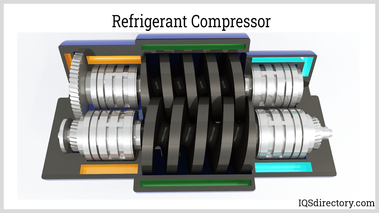 Water chiller compressors can be centrifugal, screw, scroll, or reciprocating. The selection of a compressor depends on the load of the system and the required cooling capacity.