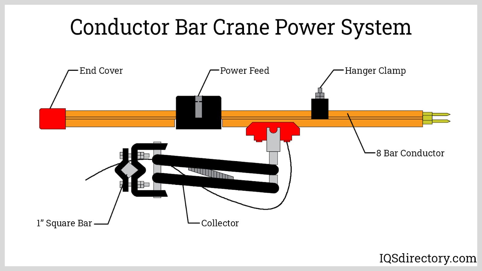 Conductor Bar – A conductor bar system is installed along the crane’s runway or monorail and is ideal for applications requiring multiple bridges or high travel speeds. Power is delivered through sliding shoe collectors, providing excellent safety, durability, and ease of maintenance. This method is especially common in automated factory lift solutions.
