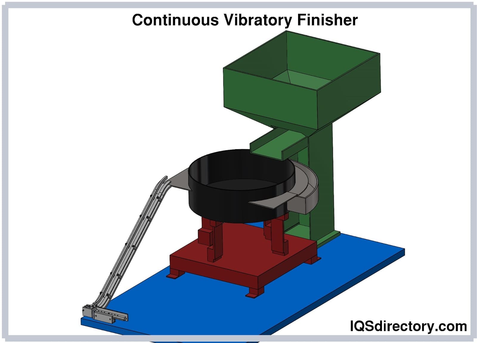 Continuous vibratory finishing enables automatic, high-throughput processing. Parts enter one end, move with the media, and exit finished at the other, minimizing manual labor and optimizing cycle times for large-scale production.