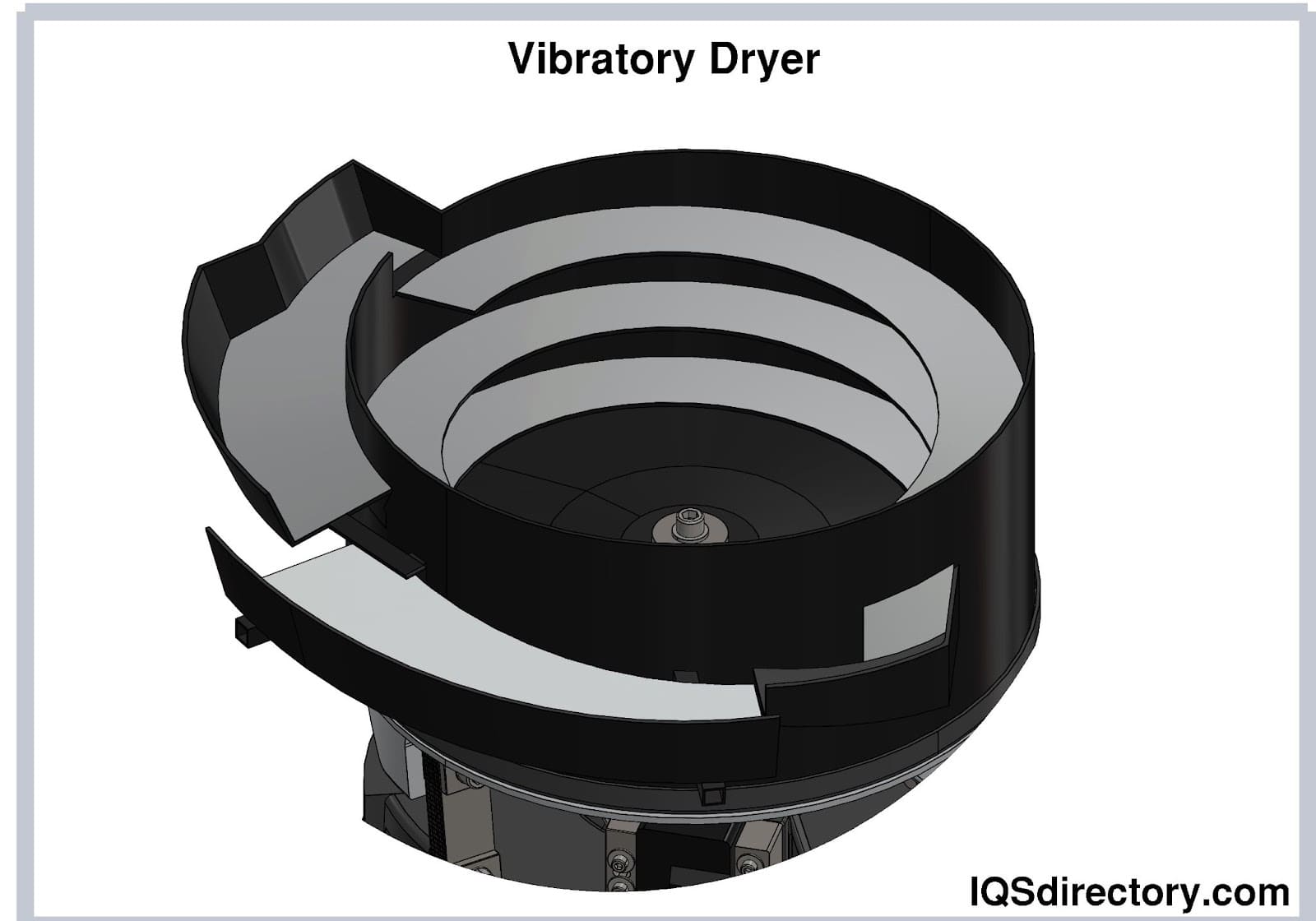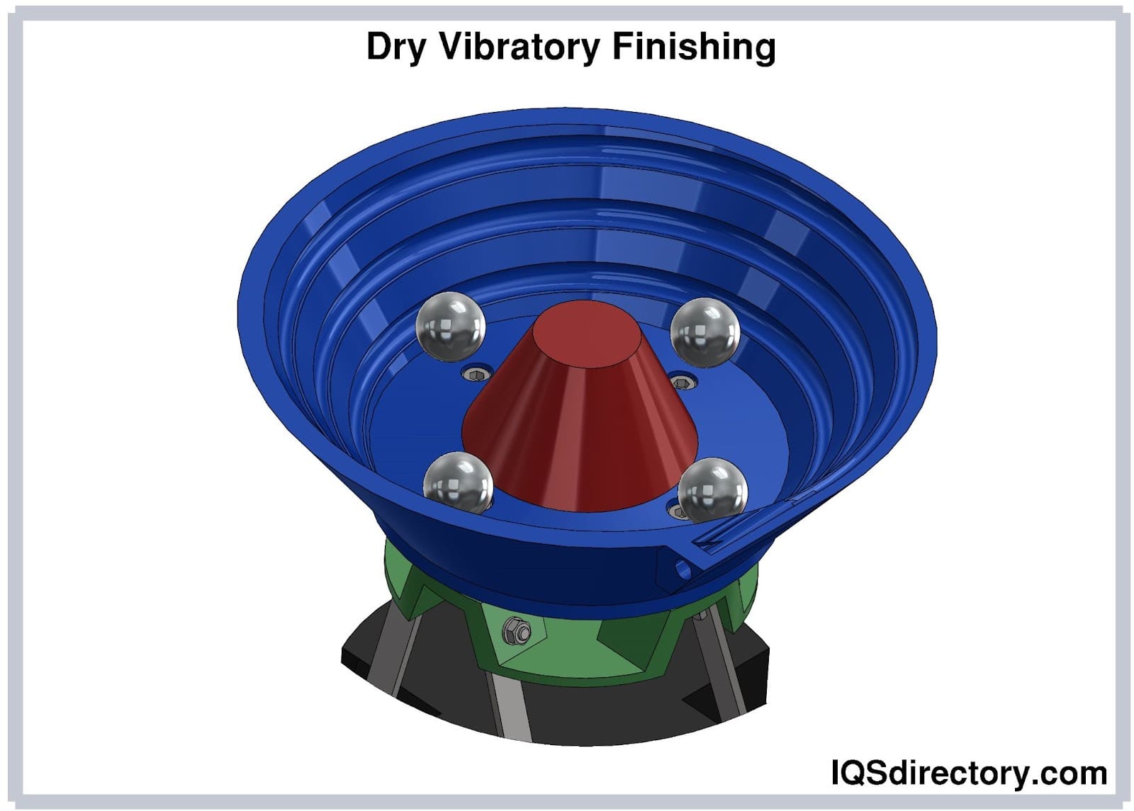 In a dry vibratory finishing process, finishing is accomplished solely by the tumbling media, without the use of specialty chemicals or water. Typically, non-abrasive media, such as corn cob grit, walnut shell media, or other organic materials, are used for surface treatment. This process is effective for deburring, light cleaning, and especially for drying and polishing parts, resulting in a bright and lustrous surface finish on the workpiece.
