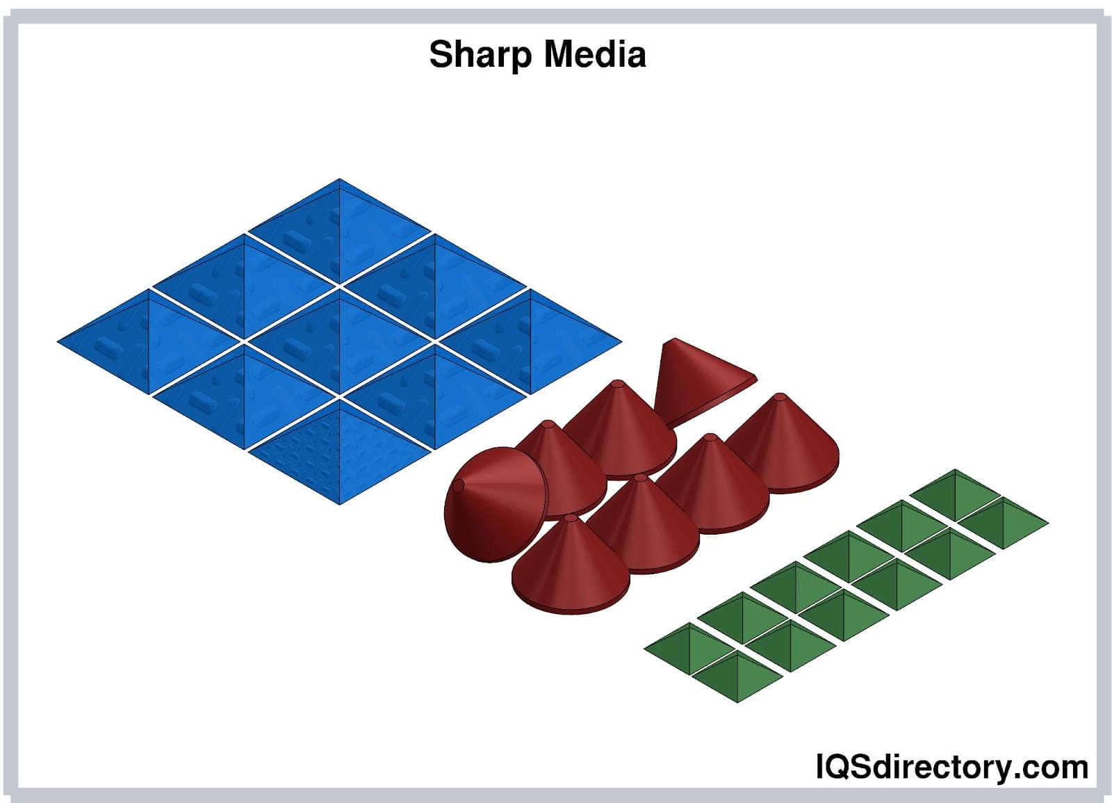 Sharp Media (triangles, wedges, and arrowheads) are specifically designed for deburring, edge radiusing, and cleaning hard-to-reach recesses such as holes, grooves, and sharp internal corners. Their flat faces and sharp angles efficiently finish areas where rounded media may fail to contact effectively. While these shapes are more prone to chipping, they excel at accessing intricate part details and providing maximum abrasive action on edges.