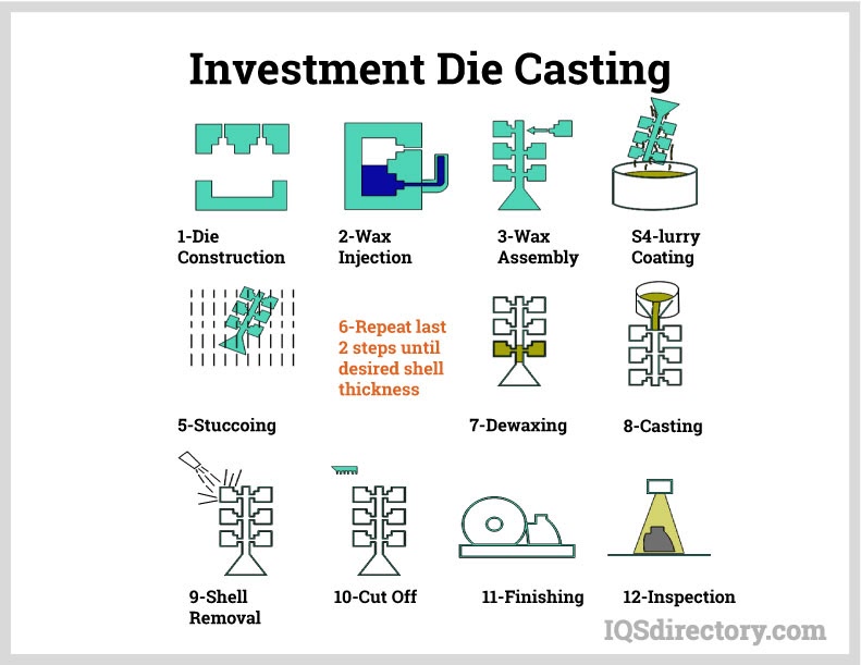 Investment casting is a metalworking process that involves creating a ceramic shell over a wax pattern to produce parts with exceptionally uniform and smooth surfaces. The wax pattern is typically created using an aluminum die. The final products of investment casting are free from parting lines, mold half marks, or other deformities.