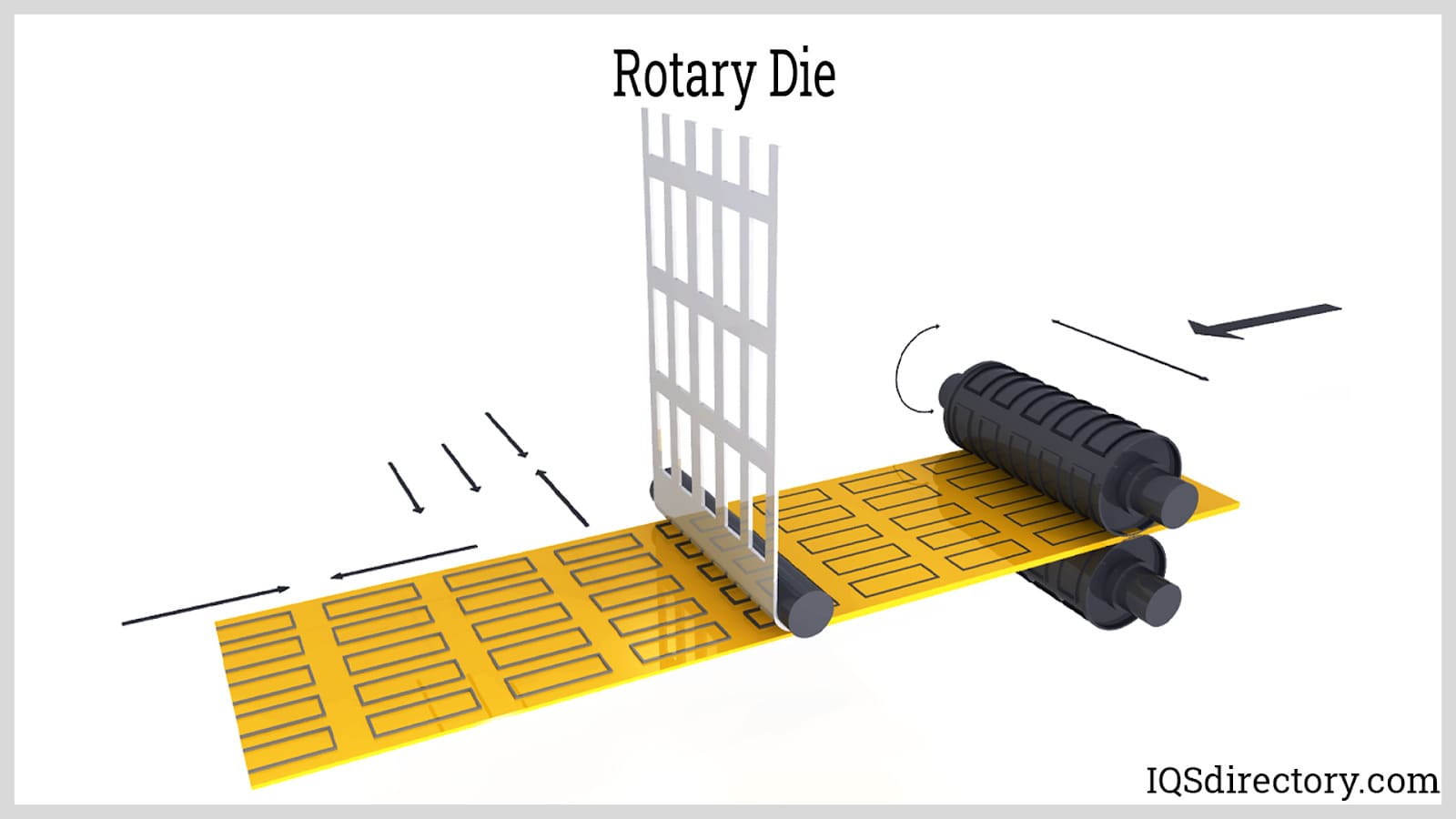 Fast and QuickRotary die cutting is exceptionally fast, which makes it the most cost effective die cutting technique. Heavy and huge rolls of raw material are fed into the rotating cylinders that rapidly cut the fed material into the desired shapes. Several impressions are cut with each rotation to produce large quantities of high quality products.
