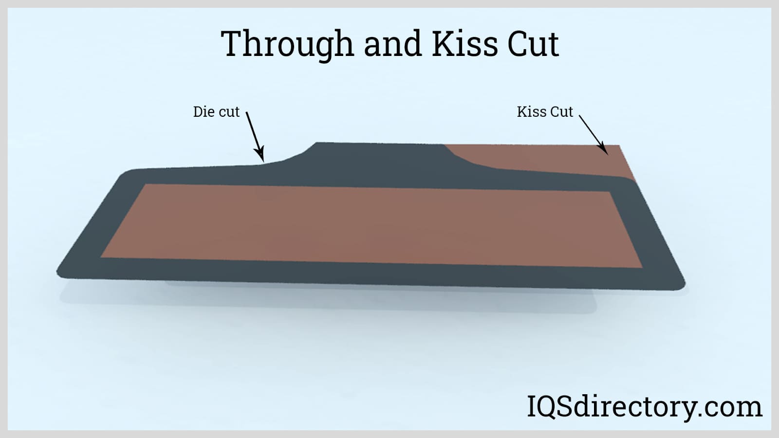 Through cutting is a die cutting technique where the sharp edge of the die extends through the entire thickness of the material, resulting in complete separation of the part. In multi-layered materials, this means cutting through the face, adhesive, and backing layers. Dies used for through cutting can also be designed to score, crease, and cut in a single stroke. The blade for through cutting is longer and thinner than those used for scoring or creasing, enabling it to cut through any depth or thickness of the material.