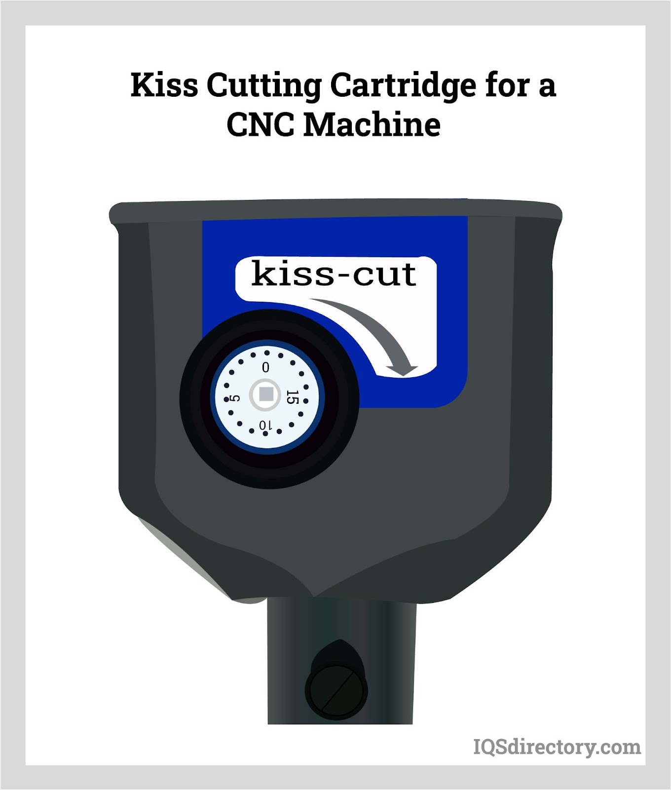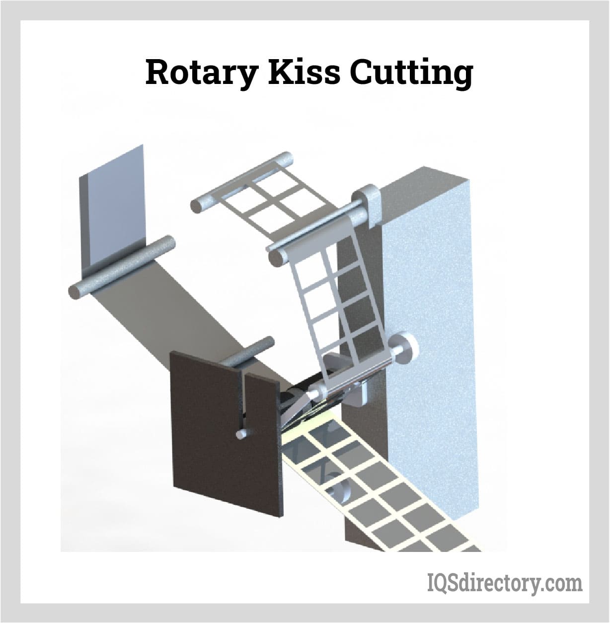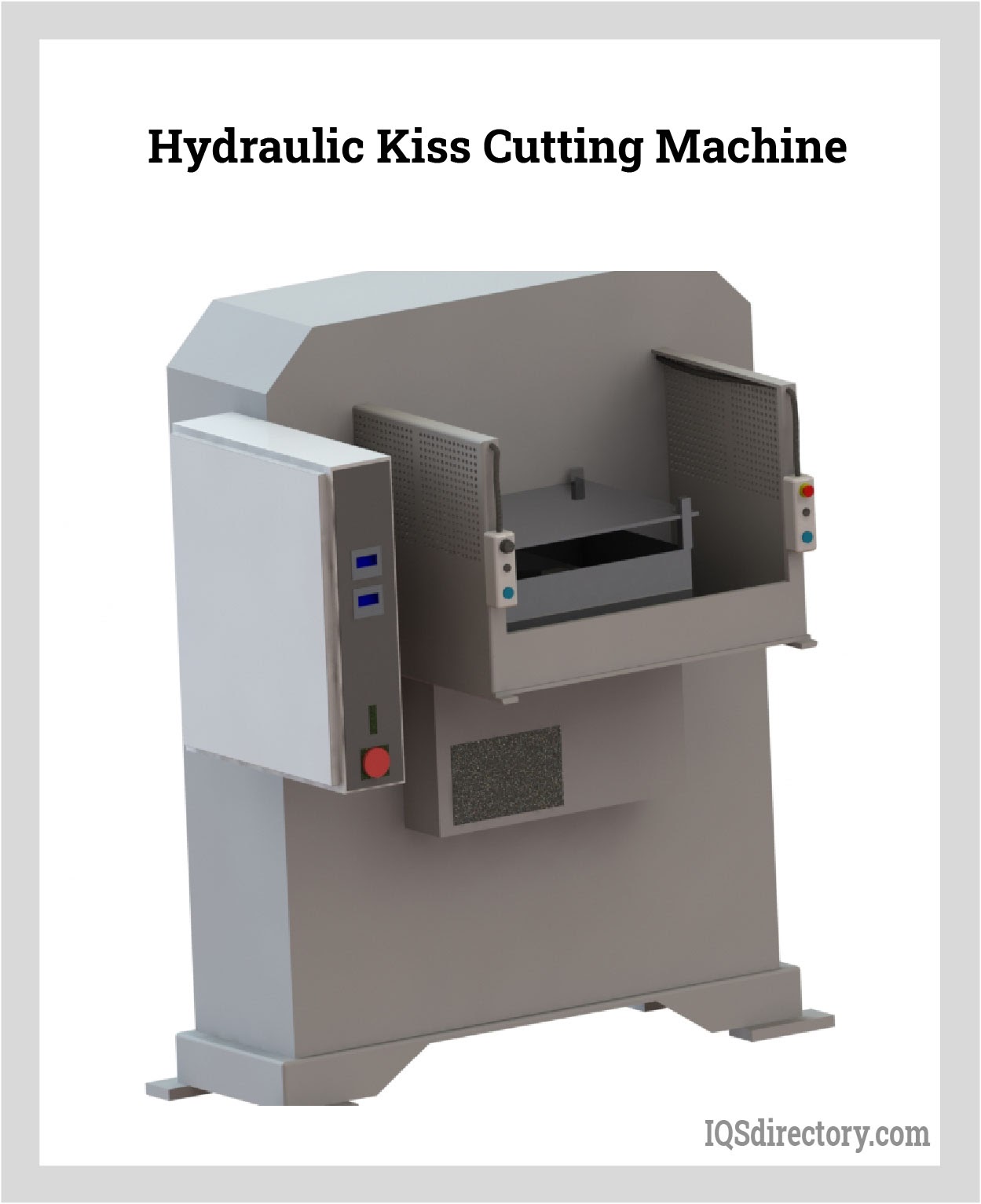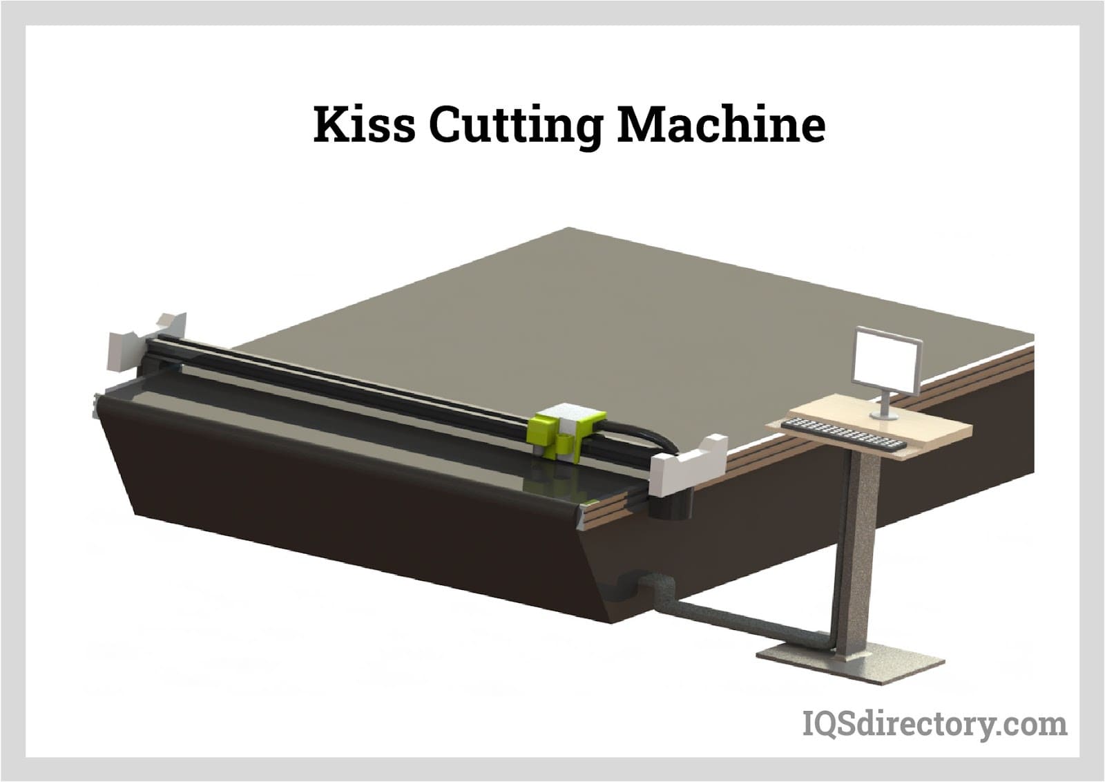 Kiss cutting can be performed using several specialized machines, including rotary die cutters, flatbed die cutters, laser die cutters, thermal die cutters, cutting tables, plotter cutters, CNC routers, hydraulic presses, mechanical presses, and clamshell presses.
