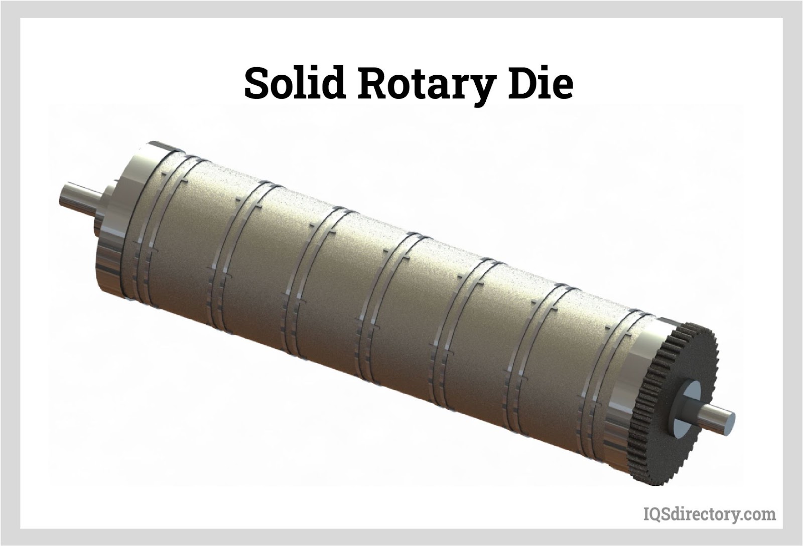 Rotary dies are cylindrical in shape and come in two types—flexible and solid. Flexible rotary dies are made from metal sheets engraved with the cutting design. In contrast, solid rotary dies are single-piece cylinders that can be mounted on a rotary die cutter.