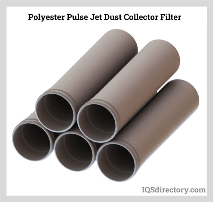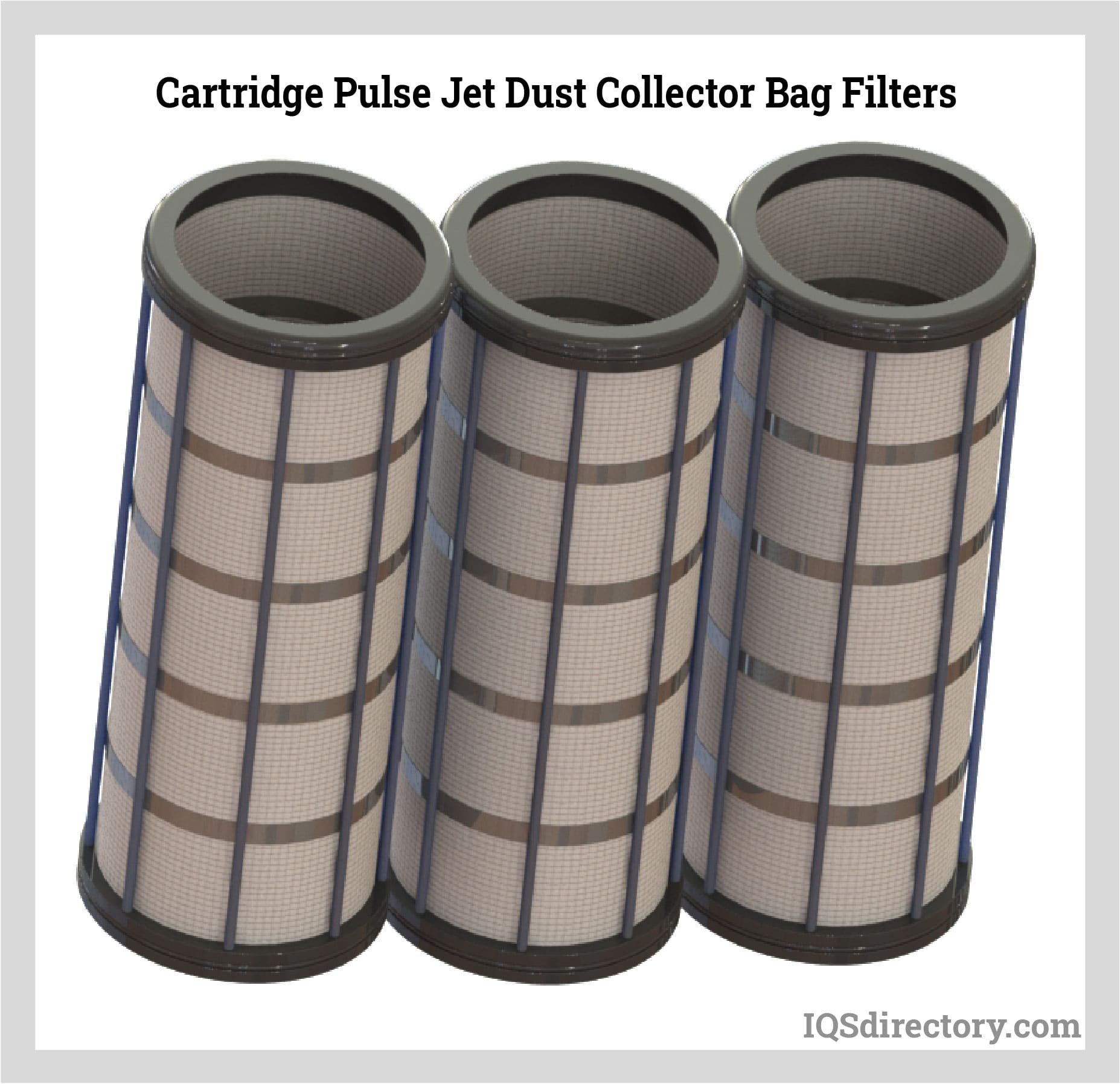 Pulse jet dust collectors use a variety of filter types, including bag filters and pleated cartridges. These are made from materials like polyester, cellulose, fiberglass, PTFE, aramid, PPS, and acrylic for specific industrial applications and environmental conditions.