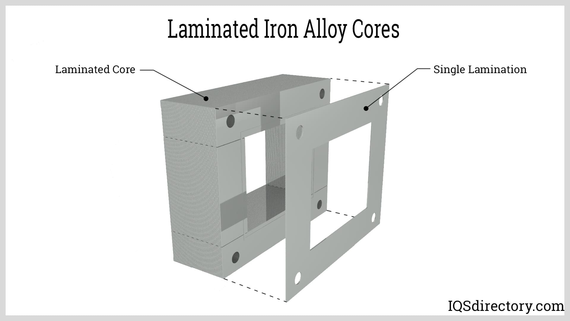 Laminated Iron Alloy Cores – Laminated iron alloy cores consist of thin sheets of metal stacked and insulated from one another, minimizing eddy current losses. These sheets are often composed of silicon steel or nickel–iron alloys, optimized for high power transformers and electric motors. Laminated construction is essential for efficiency in AC transformers, chokes, and power supplies by reducing heat generation and energy losses.