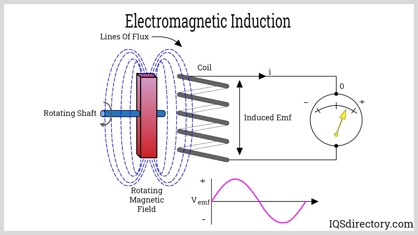 As electric current begins to flow through a conductive material, a magnetic field is generated in accordance with the right-hand rule. If the current passes through an inductor with coiled conductors, this magnetic field is enhanced, effectively turning the inductor into an electromagnet. In a reverse process, an existing magnetic field can also generate an electric current.
