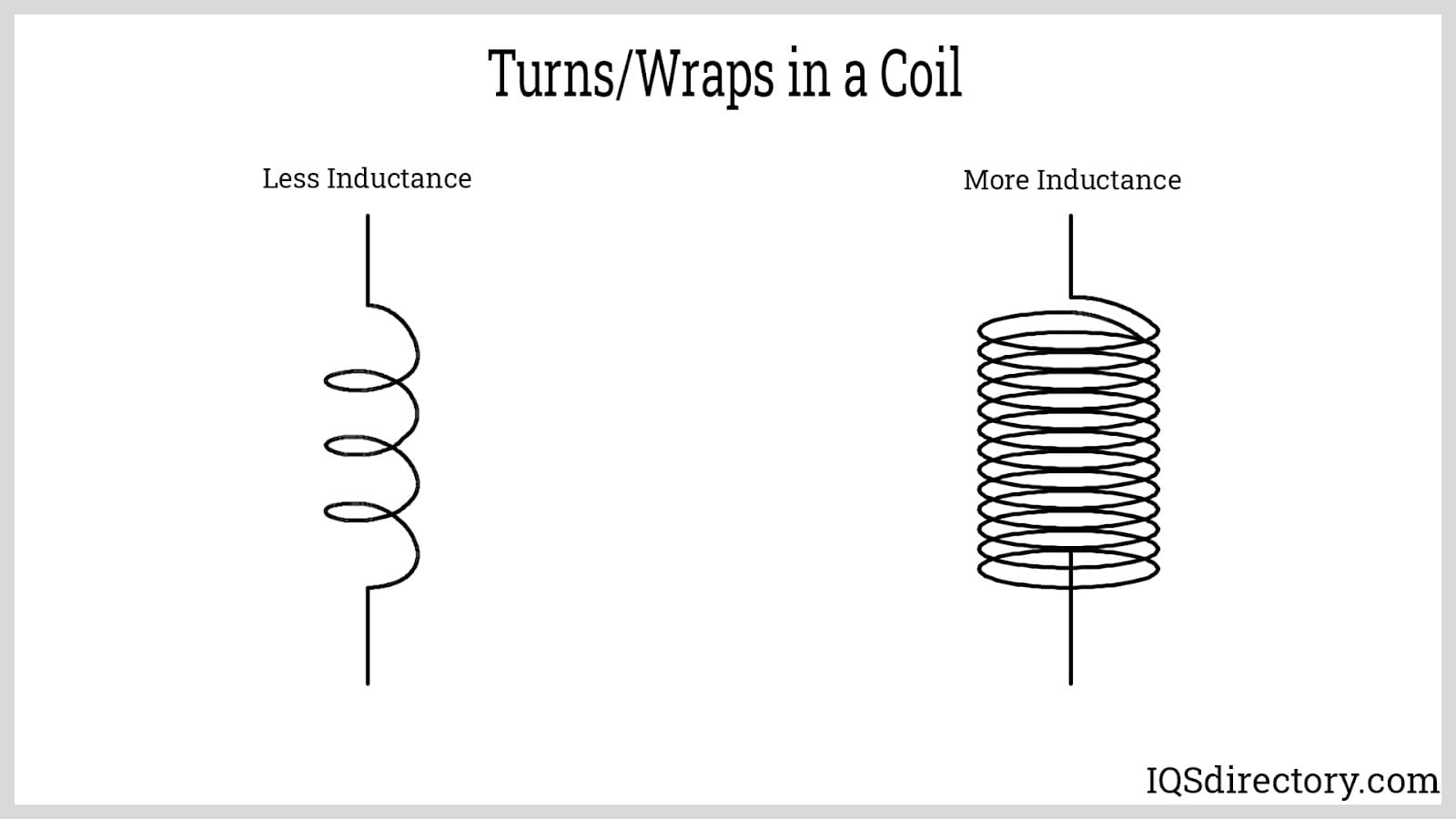 All other factors being equal, a longer coil length results in lower inductance, while a shorter coil length provides higher inductance. This is because a longer coil length increases the path that the magnetic field flux must travel, leading to greater opposition to the formation of the flux for any given field force.
