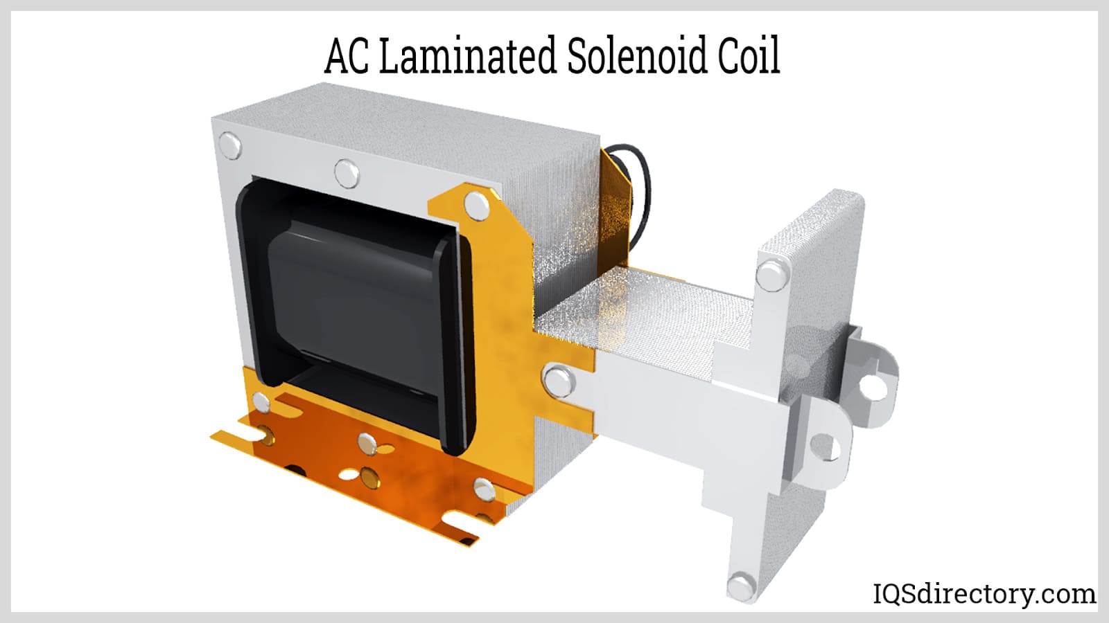An AC solenoid coil is capable of delivering a substantial amount of force on the initial stroke due to the high current input when activated. This characteristic enables the coil to produce multiple strokes effectively. AC laminated solenoid coils come in various configurations and typically produce a buzzing sound. They are well-suited for applications needing rapid response, such as in medical devices, automotive systems, printers, and household appliances.