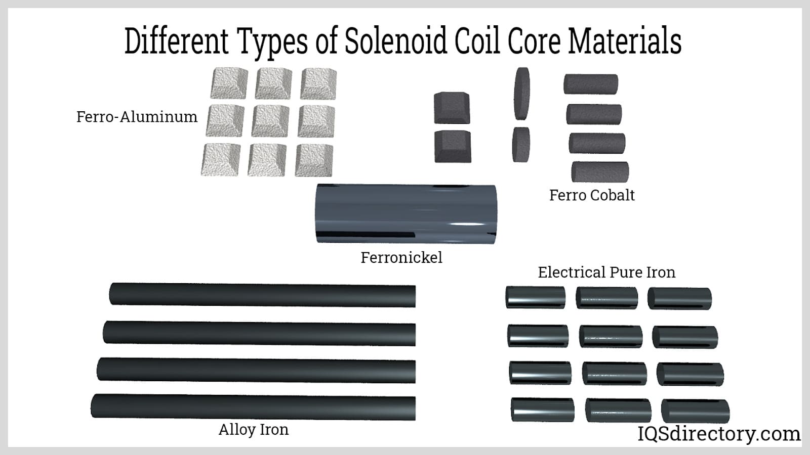 Alloy Iron – High permeability and magnetic saturation, used in heavy-duty solenoid actuators.
