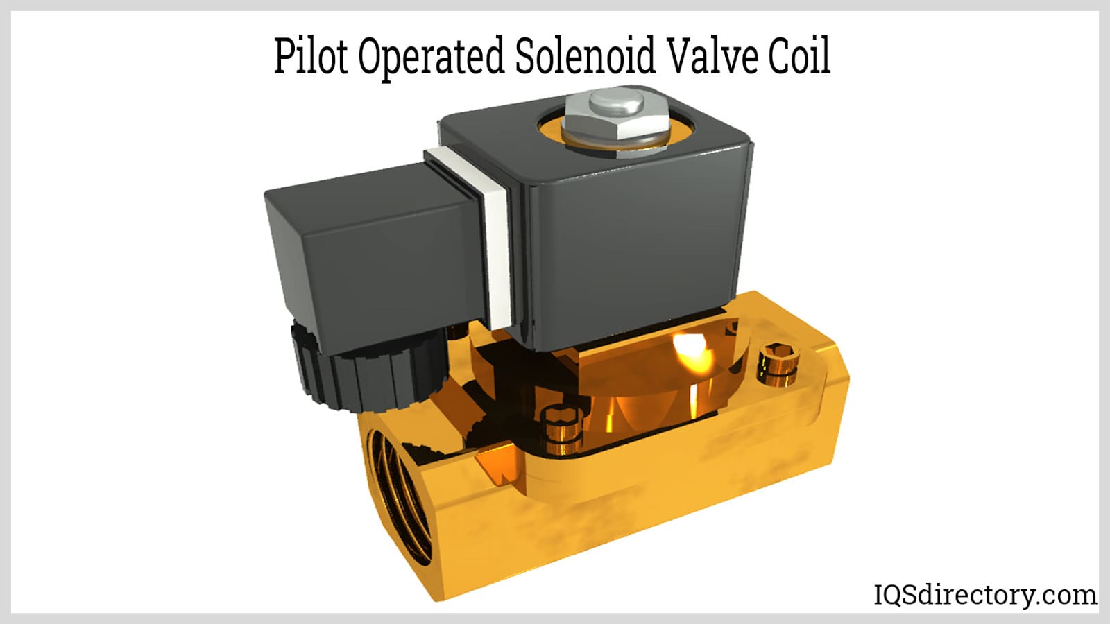 A pilot operated solenoid valve coil, also known as an indirect acting coil, utilizes pressure across the valve port to control the valve's opening or closing. When energized, the coil opens the valve, while the system's pressure maintains the valve in a closed position.