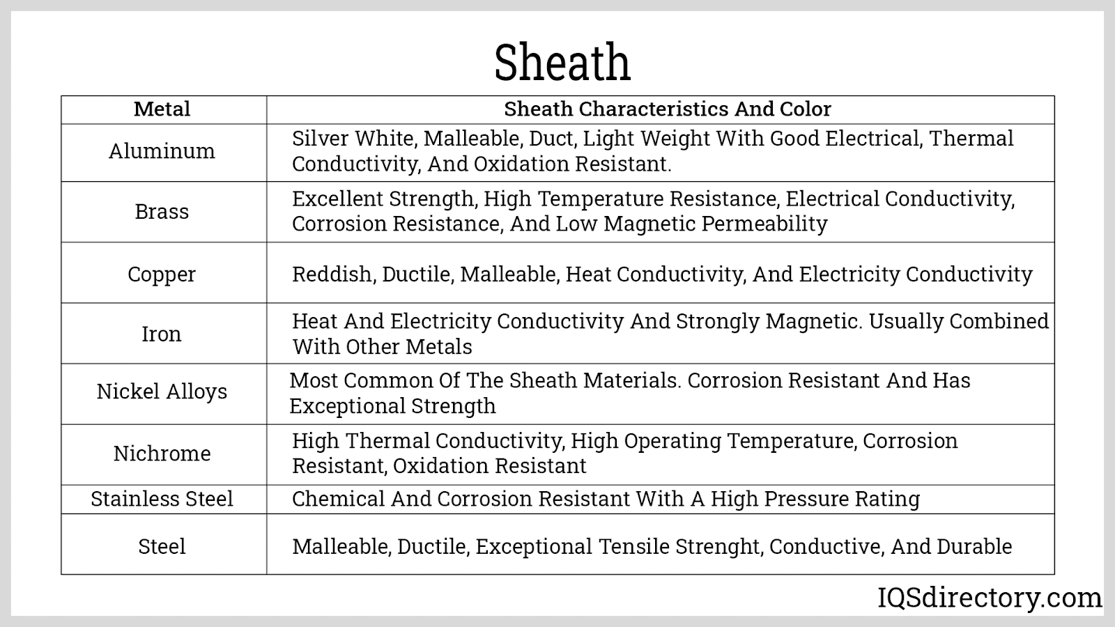Most Common of the Sheath Materials. Corrosion Resistant and has Exceptional Strength.