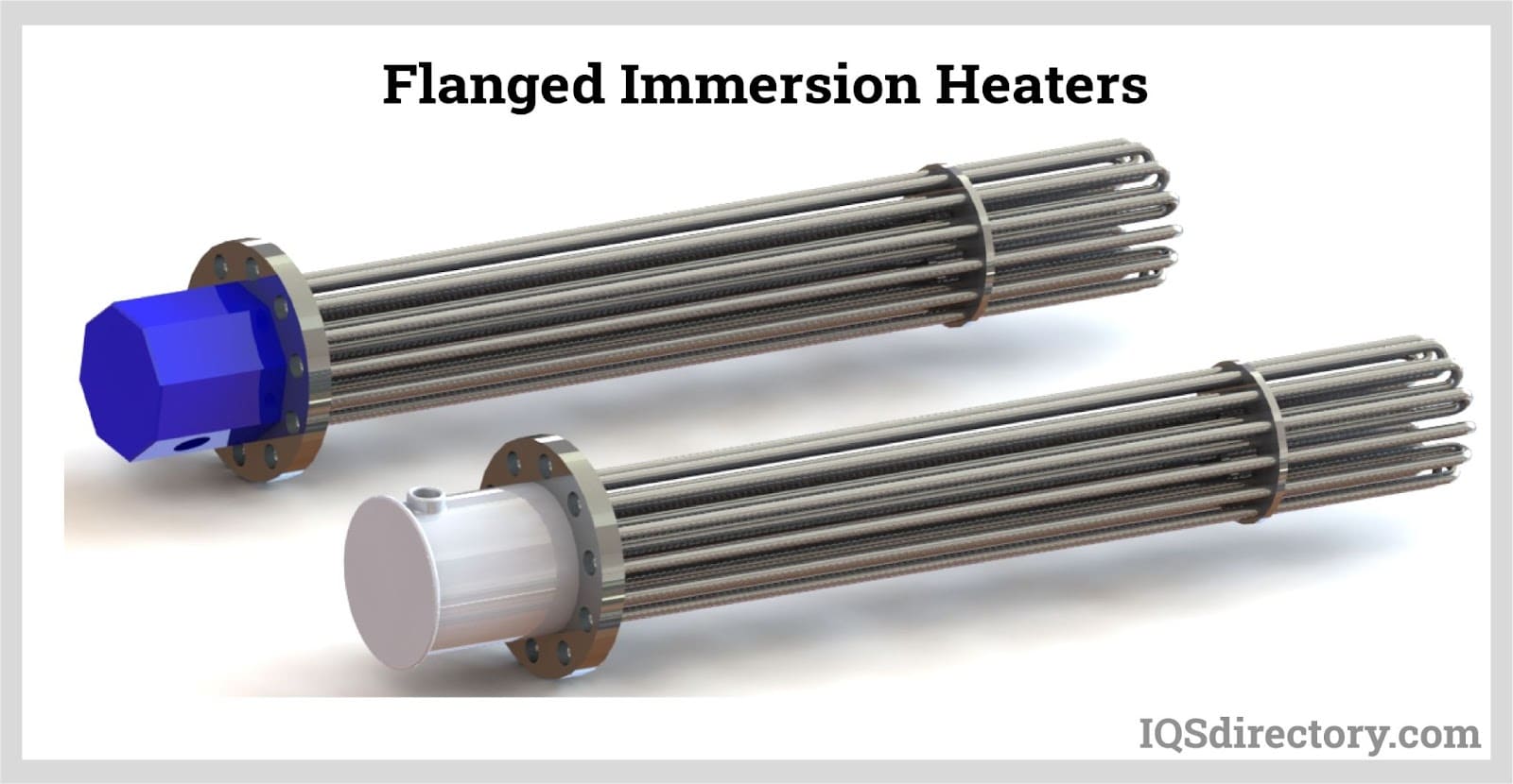 Flanged Immersion Heaters: Feature tubular elements welded or brazed to a standard ANSI or custom flange, which mounts to a tank's matching flange. Best for large tanks and industrial process heating with high watt densities.