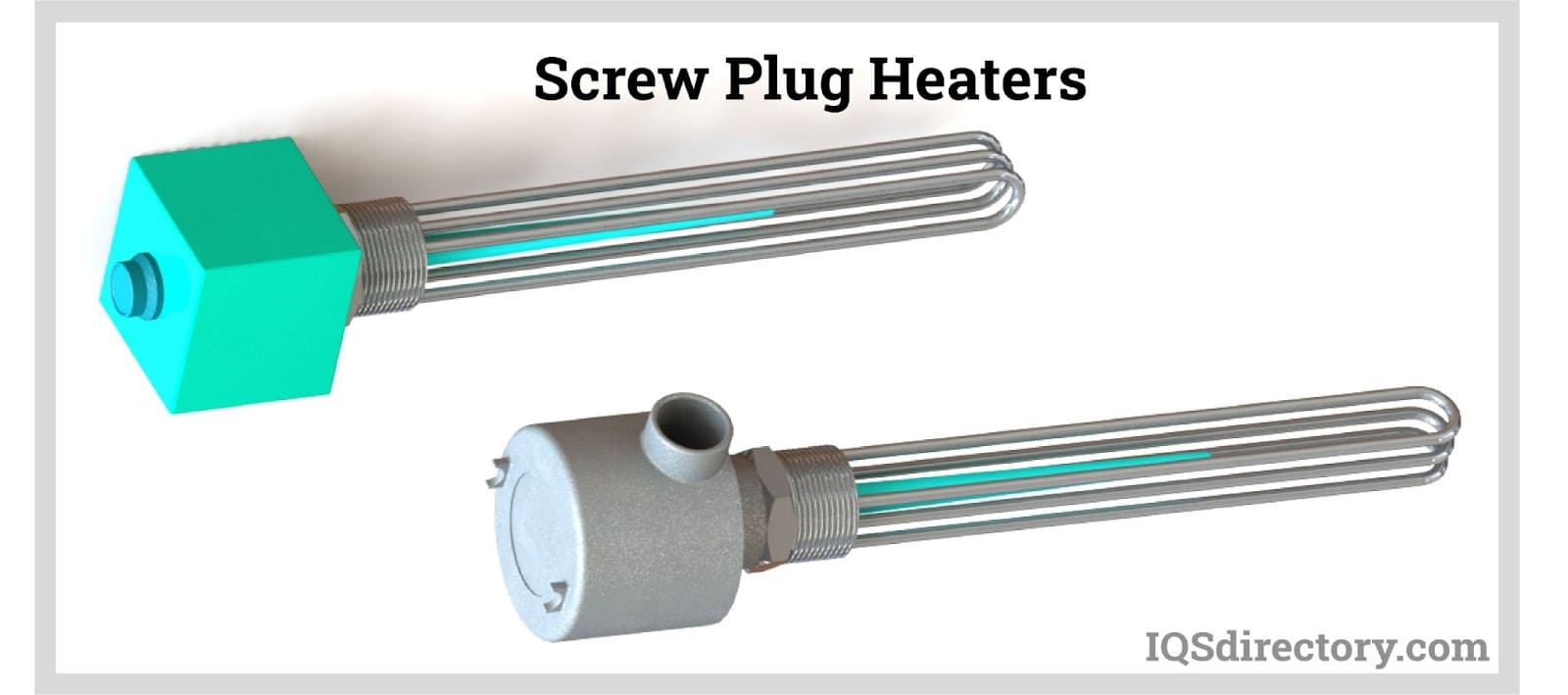 Screw Plug Heaters: Use tubular elements mounted to a threaded plug for easy installation into pipe or tank couplings. Ideal for smaller vessels and point-of-use applications.