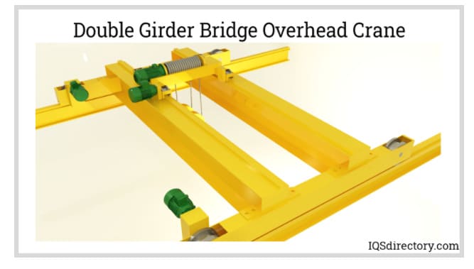 In overhead cranes, there are two parallel end trucks mounted on runway beams . The runway beams are also responsible for supporting the entire overhead crane and the load. The end trucks travel along the rails of the runway beams together with the bridge and the electric hoist. The electric hoist travels across the length of the bridge. The bridge can either be a single girder or a double girder bridge. A single girder bridge crane has one trolley that moves across a single girder beam, while the double girder bridge crane has two trolleys that move the electric hoist synchronously across two girder beams. The bridge and the end trucks are positioned perpendicularly with each other. This arrangement enables the electric hoist to move left and right (via end trucks), and forward and backward (via the bridge). Lifting and positioning parameters are controlled remotely.