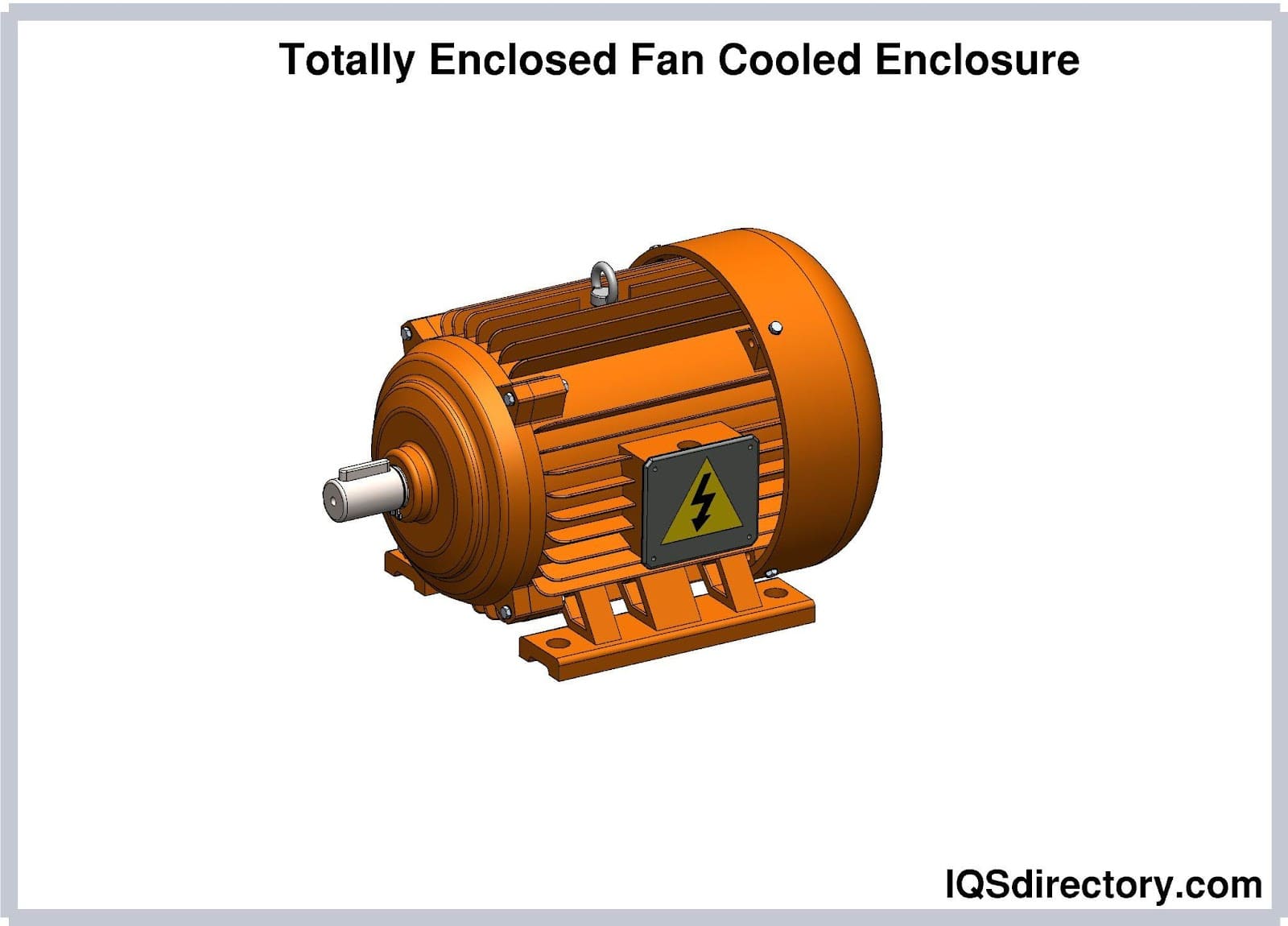 Some enclosures are designed with heat fins on the sides and do not include a fan for cooling, while totally enclosed fan-cooled enclosures feature a fan mounted on the rotor shaft.