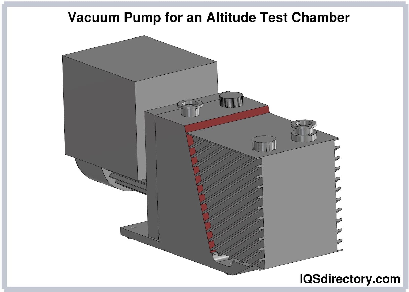To accurately simulate the conditions found at high altitudes of several thousand feet, specialized equipment is required to replicate the quality and type of air in these environments. Various sizes of vacuum pumps are used to create atmospheric conditions equivalent to altitudes of up to 100,000 feet, with some systems extending to 200,000 feet.