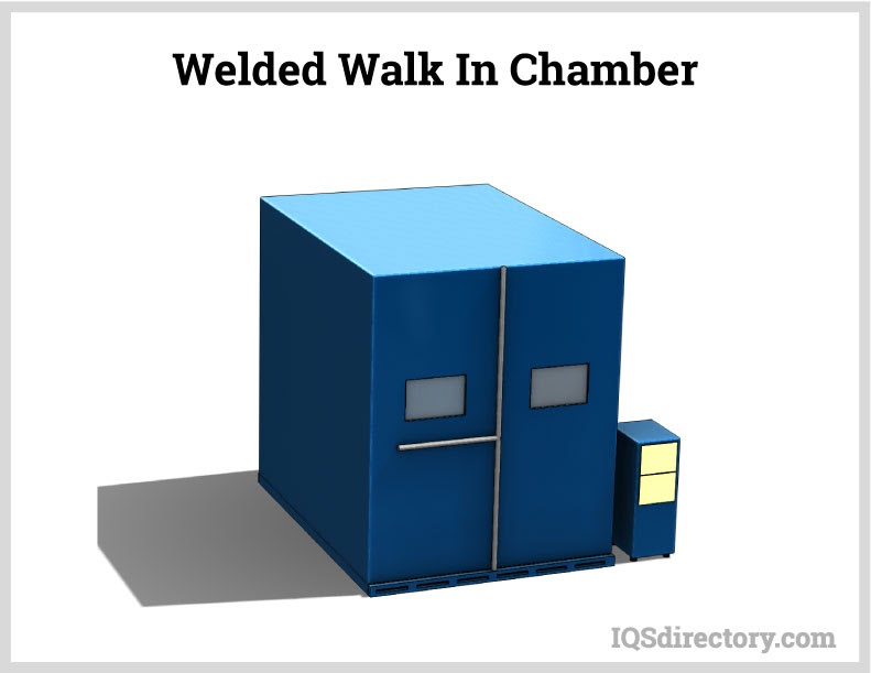 Welded test chambers are designed for high-temperature applications exceeding 200°F (93°C), as well as for high humidity, rapid temperature fluctuations, and altitude simulations. They feature a one-piece construction with a hermetically sealed steel frame.